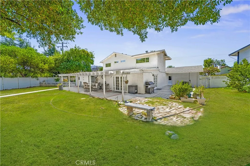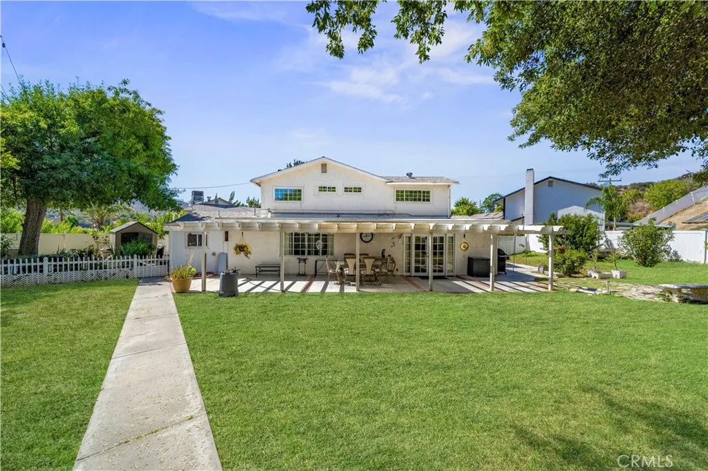 A RARE Find with Space, Privacy, and Endless Possibilities. One-of-a-Kind 5 bedroom 3100 sf two story gem privately hidden on a cul-de-sac on more than 1/3 of an acre with a grassy flat, fenced yard just a short drive north of the greater Los Angeles area. This treasure of a neighborhood has tremendous value - where you can get a large house and a huge lot for a fraction of the cost that it would be just 10 miles to the south - with convenient access to the 5 and 14 freeways, Old Town Newhall, schools, area parks, shopping, Magic Mountain, golf courses, etc. The backyard is truly the centerpiece of this property private, peaceful, and backed by open hillside with no neighbors looking in. Theres room to run and play - kick a soccer ball or throw a football - shaded spots to relax, and plenty of space for entertaining. With 16 varieties of fruit trees, a vegetable garden, a patio, and even a swing under a mature shade tree, its a yard that invites everyday comfort and enjoyment as well as large gatherings. Inside, the layout offers flexibility for multi-generational living or work-from-home needs. Accessibility has been thoughtfully considered, with the downstairs fully wheelchair-friendly and features an oversized Primary En-suite with its own living area, full bath w/walk-in closet, and private side yard access (ideal for in-laws, guests, or a potential ADU conversion). Upstairs, youll find 4 more bedrooms, including a second Primary En-suite tucked away on the backside of the house with yard & hillside views and a full bath with jetted tub and granite counters. Notable up