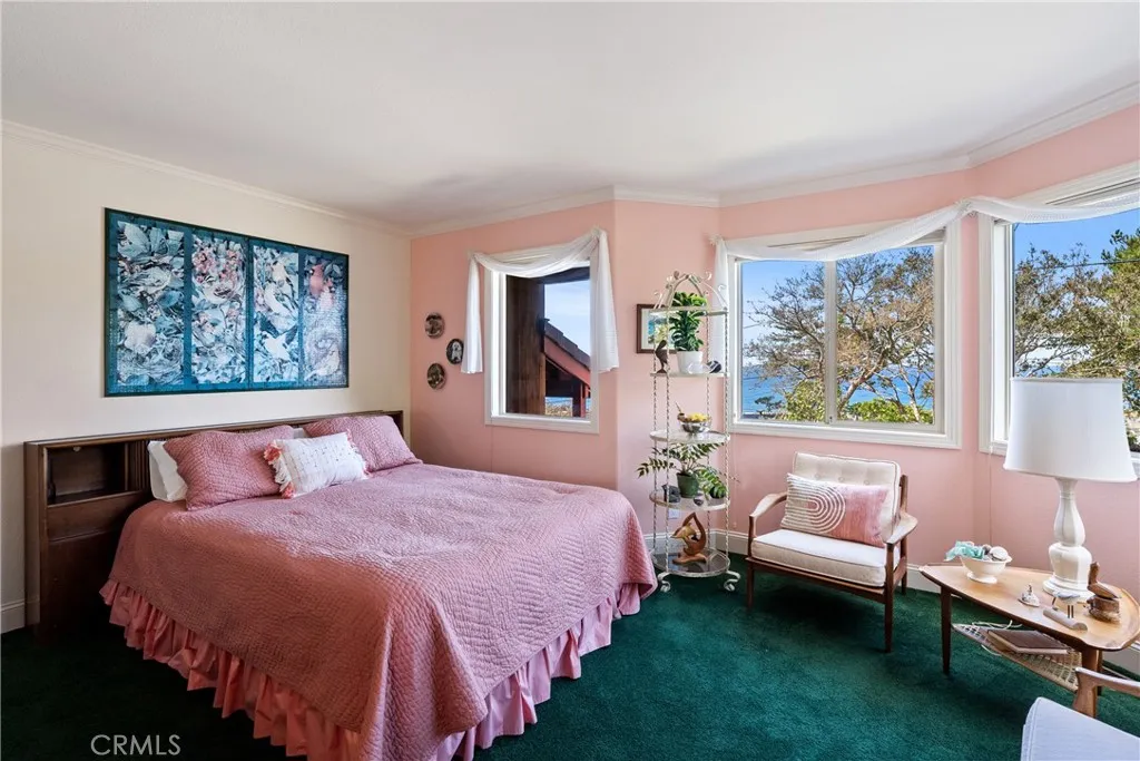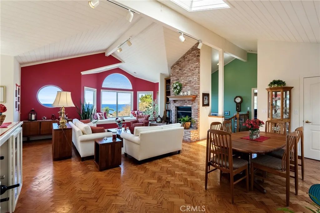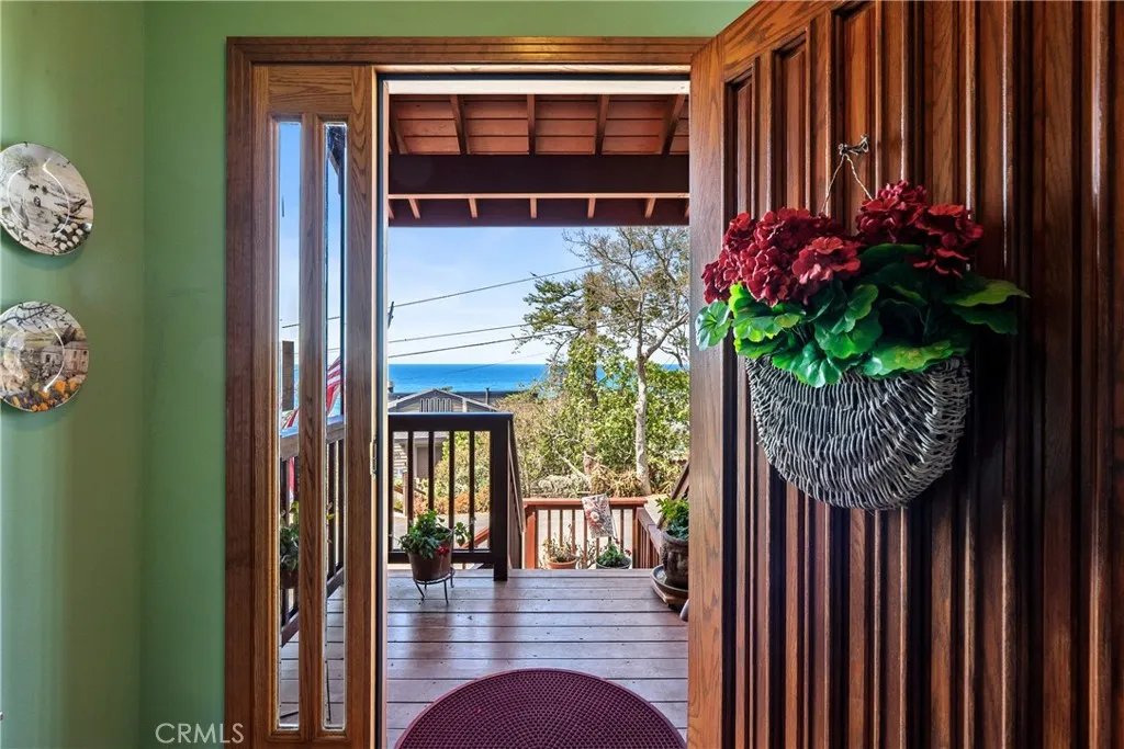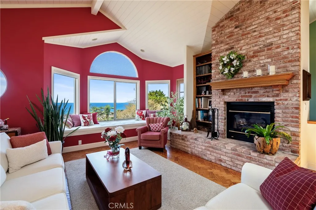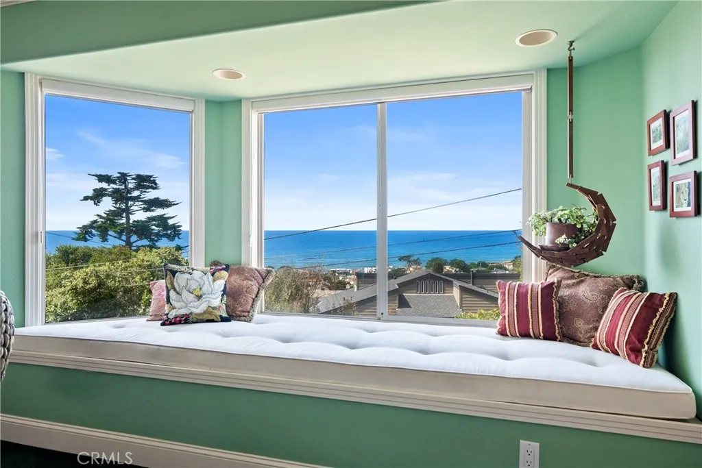 Custom built redwood home designed to capture sweeping ocean views from nearly every room. The open floor plan blends kitchen, dining, and living spaces with walls of westerly windows framing the Pacific, while easterly windows and decks look out over peaceful private gardens. The kitchen is a true centerpiece with custom Corian countertops, handcrafted tile backsplash, a garden window, 36-inch five burner cooktop, custom wood floors, and a shiplap ceiling, all opening seamlessly to the living areas. The living room invites gatherings with its woodburning fireplace, brick hearth, built-in bookcases, and massive window seat. A dumbwaiter provides effortless convenience with an access door on each level, perfect for moving groceries and household items with ease. The primary suite is a private retreat with a gas fireplace, two walk-in closets, spa-like bathroom with jetted tub, separate shower, dual sinks, and a private deck overlooking the Pacific. A second oversized window seat adds warmth and character to the suite. Situated on three lots, the property enjoys drought-tolerant landscaping sustained by an artesian-fed water capture and storage system. Every level features a deck to take in the views, while the concrete tile roof, cobblestone-style driveway, and two-car garage enhance its quality and appeal. Built by sought-after Brian Wilson. Located in one of the most sought-after neighborhoods near both the ocean and Fiscalini Ranch, this one-of-a-kind home pairs custom craftsmanship with coastal living at its finest.