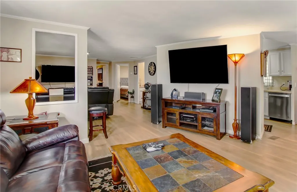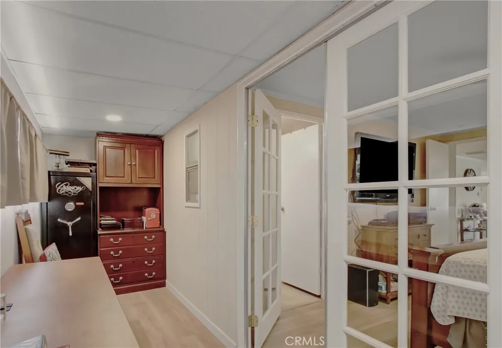 A home with style and character....exceptionally well maintained....a place to plop down ending your day in comfort....open floor plan with the ease of moving from room to room.....traditional L-Shaped Dining and Living Room arrangement....separate Family area open to the living room a comfortable TV niche....Window Slider opening up to Another room currently set up as an office....Updated kitchen including Stainless Steel Refrigerator, Microwave, Dishwasher, Gas R/O and Sink...new cabinets throughout and pantry...Washer/Dryer included....Primary bedroom large with double door walkin closet plus Double French Doors opening up to still another room enhancing this rooms functionality....Attached Primary bath with shower....Ceiling Fans, Storage Shed and the surprise of a private courtyard like setting in the middle of Italy....+55 senior community with clubhouse. kitchen, meeting room, game room, pool, spa, parking for RV's and more....