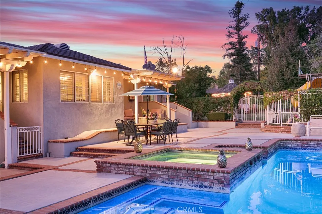 Discover the pinnacle of tranquil California living at this remarkable Friendly Hills estate, where classic elegance meets modern comfort. Nestled on a quiet corner lot, this property is a private sanctuary offering a legacy of quality and peace of mind in one of Whittier's most sought-after neighborhoods. Step inside to an interior of thoughtful design and luxury. Gleaming hardwood floors flow through formal and informal living and dining areas, perfect for both grand entertaining and casual relaxation. Find a quiet moment in the sophisticated library with its inviting fireplace. The gourmet kitchen is a culinary masterpiece, featuring premium Viking appliances, expansive granite countertops, a large center island, and double ovens. Grand windows and glass doors bathe the home in an abundance of natural light. The home's accommodations are highlighted by an expansive dual room master suite featuring its own private deck. This luxurious space consists of the main master bedroom, which includes its own retreat and a large walk-in closet, and a magnificent custom bathroom that serves as a personal spa, complete with a classic clawfoot tub, a separate shower, and elegant stone floors. The lower level adds to the home's versatility, featuring a desirable private guest suite with its own separate entry and kitchenette, as well as a large entertainment room perfect for gatherings and recreation. The exterior is an absolute oasis, your own private paradise. The meticulously manicured grounds create a tranquil, park-like setting offering serene privacy. The backyard is an entertain