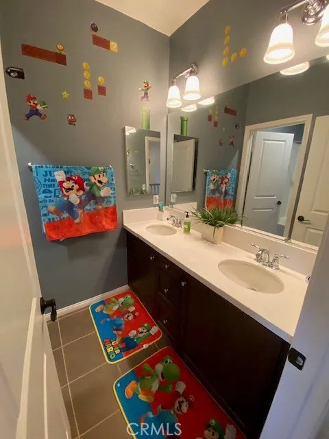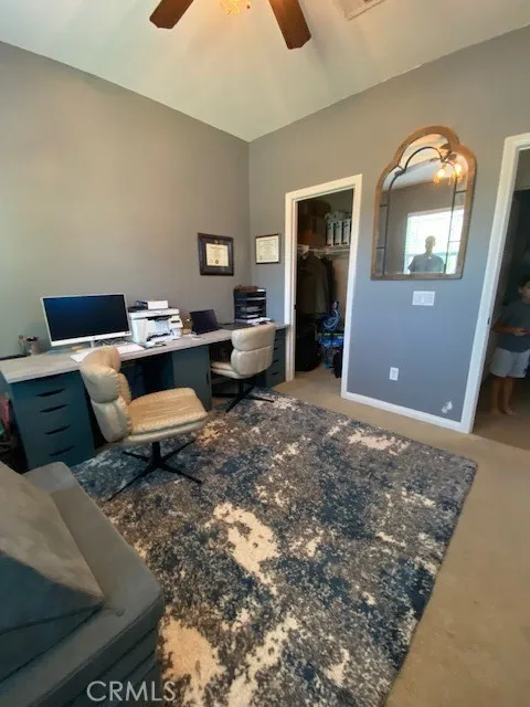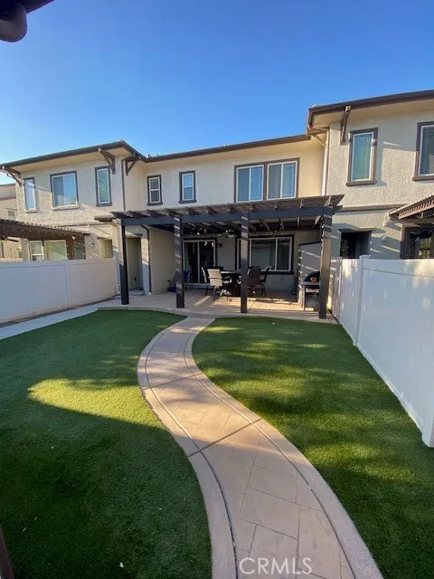 Make front door entry thru covered patio with neighborhood view beneath the ceiling fan. Once thru the door there is a downstairs bedroom/office to the left with a 3/4 bath nearby. Step further to view the nicely decorated kitchen, dining and family room. There is extra storage behind the swiveling bookcase in the family room. There is a nice view of the backyard from most of the downstairs. Access to the backyard is from either a sliding glass or the swinging door. This creates a free flow perfect for entertaining. The backyard has an aluminum patio cover with ceiling fan, stone textured stamped cement and artificial turf for easy maintenance. There is a 2 car garage on the south side of the backyard. Upstairs are the main bedroom, two secondary bedrooms, 2 full bathrooms along with a laundry room. All show clean and nicely decorated. The master bedroom has a view of the backyard while the secondary bedrooms have a street view. Please note the very large closet in the main bedroom suite.