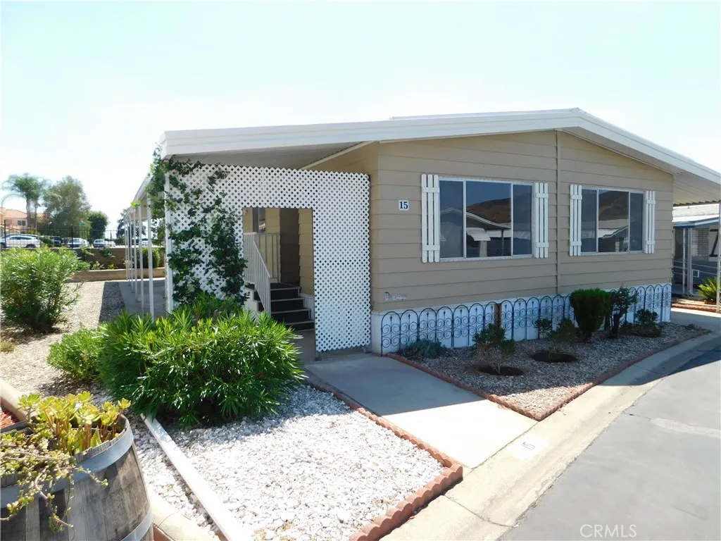 ~~BEAUTIFUL HOME WITH GREAT VIEWS SITUATED ALONG THE PERIMETER OF THE PARK WITH NO NEIGHBORS BEHIND AND ENDLESS VIEWS IN THE FRONT, LOCATED IN YUCAIPA'S HIGHLY REQUESTED 55+ COMMUNITY OF EL DORADO PALMS...LOW SPACE RENT ONLY $509~OVERSIZED LOW MAINTENANCE YARD WITH HUGE CONCRETE FRONT PORCH~~~~~BRAND NEW 30 YEAR METAL ROOF INSTALLED IN APRIL 2020 BY SOUTHWEST HOME IMPROVEMENTS FOR $17,500~RELEVELED PLUS 44 NEW PADS & PIERS INSTALLED IN APRIL 2020 BY SOUTHWEST HOME IMPROVEMENTS FOR $2,500~PAINTED EXTERIOR IN AUG 2023 FOR $2,800~~~~~ LARGE BRIGHT LIVING ROOM WITH MOUNTAIN VIEWS~FULL SIZE DINING ROOM WITH BUILT-IN HUTCH AND NEW LIGHT FIXTURE~SEPARATE SPACIOUS FAMILY ROOM~OPEN KITCHEN WITH FRESHLY PAINTED CABINETS...FRIDGE INCLUDED~PRIMARY BEDROOM IS KING SIZE WITH WALK-IN CLOSET~PRIMARY BATH HAS TUB/SHOWER WITH ENCLOSURE~GUEST BEDROOM IS QUEEN SIZE WITH WALK-IN CLOSET~GUEST BATH WAS REMODELD IN 2015 WITH FULL SIZE WALK IN SHOWER WITH RAIN GLASS ENCLOSURE, NEW VANITY, TOILET AND FLOORING~LAUNDRY ROOM OFF THE KITCHEN...WASHER & DRYER INCLUDED~2-3 VEHICLE CARORT~2 SHEDS~***CALL FOR A TOUR***