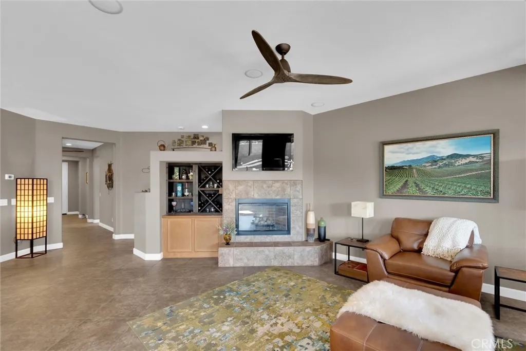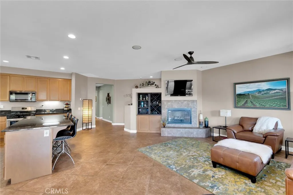 Popular single-story home on a Corner Lot with Open Floorplan. No rear neighbors! 3 Spacious bedrooms & 2 bathrooms. This home is in pristine condition and shows true pride of ownership. Enter through a lengthy hallway with high ceilings that opens up to the Open Great Room. The beautiful gourmet kitchen features generous cabinets, a large island ,stainless steel appliances, and granite countertops. New 2025 Stove, Garbage disposal and Water Heater! Spacious open Great Room with surround sound system & cozy fireplace with raised hearth is the perfect place to entertain. Primary suite is on one side of the home, separating you from the other 2 bedrooms. Primary bathroom with a Separate walk in shower and soaking tub, generous walk-in closet and dual sinks & vanity! There is also a huge walk in closet! Secondary bedrooms are large , one featuring a Barn Door entrance! Additional features include an Indoor Laundry room with storage cabinets, Plantation Shutters, Ceiling Fans and beautiful oversized 20" tile flooring throughout the living spaces. Laminate flooring in bedrooms. Outside, the backyard features a fully landscaped, low maintenance yard with no rear neighbors! Pick your own fruit from the lemon & lime trees! Large covered alumawood patio cover, with custom hardscape, and show stopper built in fire pit with fire glass. Block wall fencing, with vinyl fencing on one side. Extra large 2 1/2 car garage! Located in the award-winning Temecula school district, in the Dutch Village neighborhood near sports parks, playgrounds, walking trails and shopping, this home has it all!