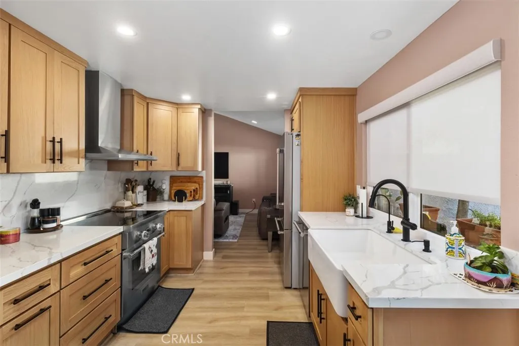 Welcome to 438 N Via Capri, an elegantly updated townhome in the highly desirable Villa Frontera community of Anaheim. Featuring 3 bedrooms and 1.5 bathrooms, this residence offers a refined living experience with thoughtful upgrades and a vibrant lifestyle setting. The interior is filled with natural light streaming through dual-pane windows, enhanced by soaring ceilings and automatic shades in the living room. The open layout is complemented by luxury vinyl plank flooring, recessed lighting, and a fresh modern color palette. The expanded kitchen is the true heart of the home, showcasing quartz countertops, a ceramic farmhouse sink, premium Thermador appliances, and a reverse osmosis system. Every detail has been considered, from the new electrical panel and copper plumbing to the tankless water heater and water softener, ensuring both comfort and peace of mind. Upstairs, the bedrooms provide a private retreat with crown molding and spacious closets. The full bathroom has been completely refreshed with a rain shower head, new tub, and upgraded copper plumbing, creating a spa-like ambiance. Step outside to a private backyard with room for entertaining and your own avocado tree. A two-car garage with in-unit washer and dryer, ample guest parking, and central heating and air with Nest thermostat add everyday convenience. Life in Villa Frontera offers more than just a homeits a community. Residents enjoy a large sparkling pool, beautifully maintained grounds, and easy access to Anaheim Coves Trail, Rio Vista Park, and nearby playgrounds. Families will also appreciate the homes