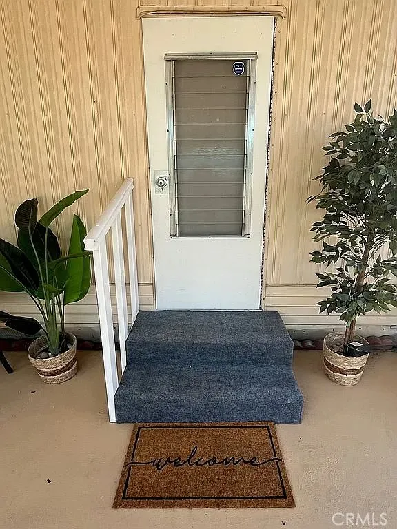 Charming Desert Home - in 55+ Palm Springs Community. Welcome to your desert retreat! This spacious 1-bedroom, 1-bathroom mobile home is ready to move in! Offering 945 sq.ft. which includes the 225 sq.ft. elegant enclosed sunroom. Remodeled throughout, with modern features including new flooring, fresh paint, new fixtures, new trim, and modern lighting throughout. The oversized bedroom offers plenty of space and flexibility to create a second bedroom if desired, or enjoy it as a spacious reading room, office, or mini-gym, the possibilities are endless! The open floor plan seamlessly connects the living room and kitchen, creating an inviting space for entertaining. The kitchen and bathroom feature beautifully refinished Spanish Saltillo tile flooring, adding warmth and charm to the space. The large bedroom provides plenty of closet space, while the bathroom has been refreshed for comfort and style. There is an abundance of closet and cabinet space throughout, including the well-appointed kitchen offering plenty of room for storage and organization. The home features all-new window treatments, including blinds, sheers, and blackout curtains. Covered porch/sitting area plus an additional side patioperfect for morning coffee, evening refreshments or relaxing outdoors. Covered carport and storage shed add extra convenience and functionality. Enjoy the convenience of in-home washer and dryer hook-ups, giving you extra flexibility. The pre-owned washer & dryer are complimentary (as-is). The park offers great amenities, including a sparkling swimming pool and relaxing hot tub, rec