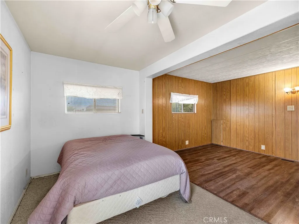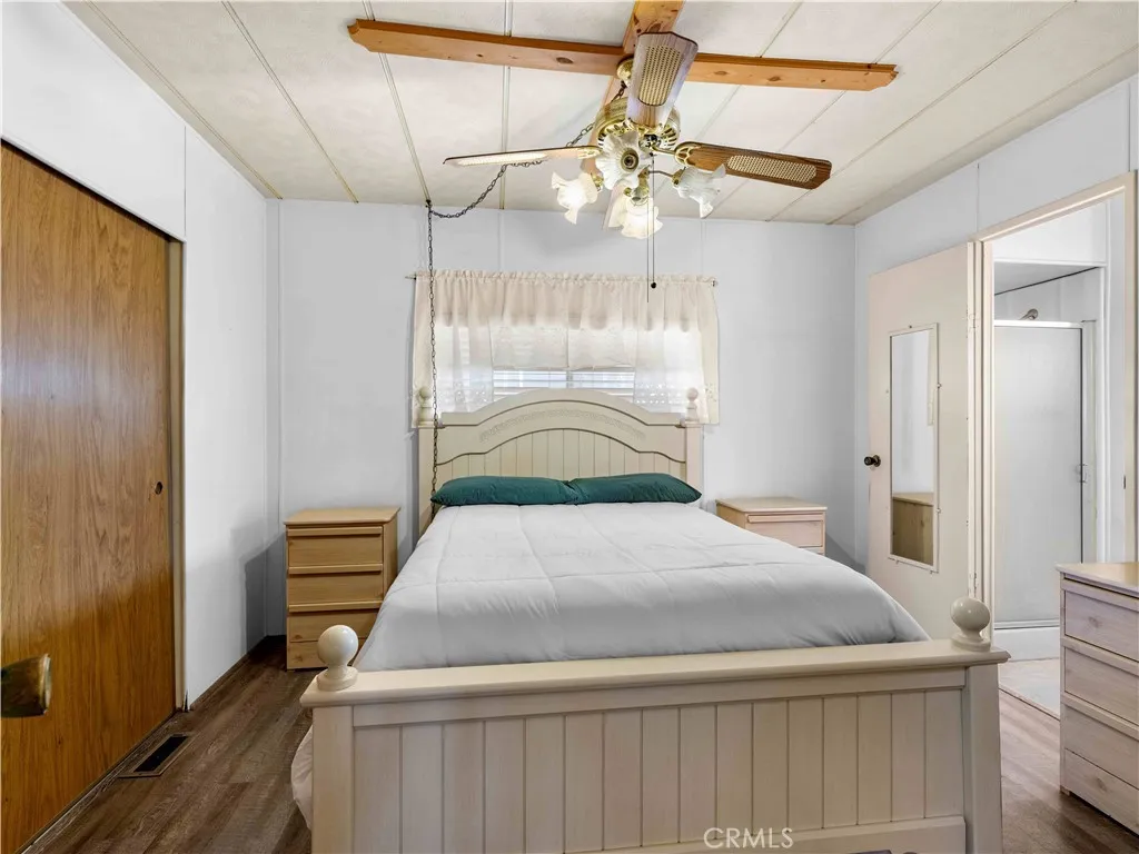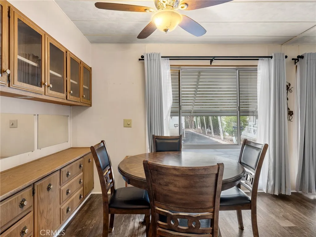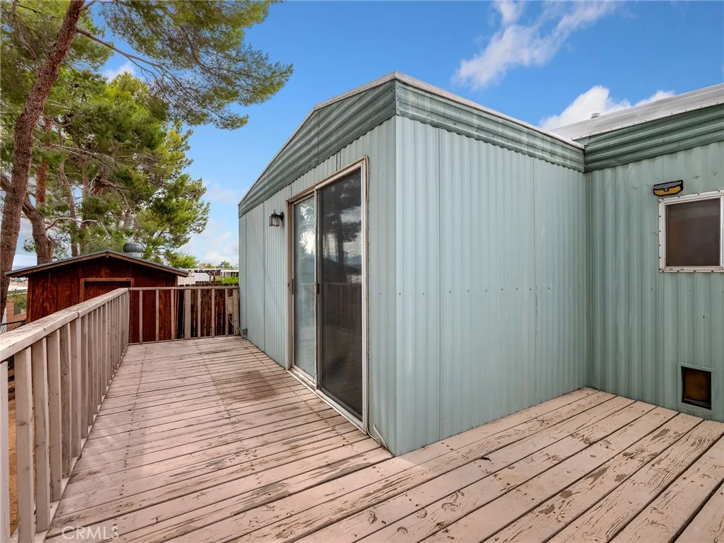 Tucked away in a welcoming 55+ Apple Valley community, this manufactured home is move-in ready and full of surprises. Step inside to a spacious great room with a formal dining area, fresh laminate flooring (installed just 6 months ago), and plenty of natural light. The kitchen offers not one but two pantry closets, and appliances are included washer, dryer, fridge, and stove so you can settle in with ease. The home features two generously sized bedrooms: one with an en suite bath, the other with a sitting area, dual closets, and access to a private deck with sweeping valley and desert views. Outside, youll find a fenced yard, two storage sheds (one with electricity and a foundation), and a deck perfect for enjoying those breezy desert evenings under the pine trees. With a new water heater, well-kept condition, and even some furniture included, this one is truly turn-key.