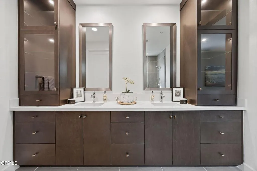 Beautiful, turn-key home in Camarillo's desirable 'The Grove' 55+ community. Meticulously maintained with high-quality finishes throughout, every bedroom and bath reflects pride of ownership. Thoughtfully designed for comfort and effortless living, this light-filled residence features an open floor plan with two spacious bedrooms--each with an en-suite bath--on the main level. Upstairs, a private third bedroom and full bath create the perfect retreat for guests or multigenerational living. An additional downstairs office/den offers flexible use and could serve as a fourth bedroom if needed.The gourmet kitchen shines with ceiling-height cabinetry, quartz countertops, a striking Italian tile backsplash, top-tier stainless steel appliances, and abundant storage. A large island anchors the space and flows seamlessly into the family room for easy entertaining. Host memorable gatherings in the open-concept Great Room, then step into the private California Room/lanai to enjoy the soothing fountain and lush, low-maintenance landscaping--beauty and privacy all in one.Start living your best years at this active adult resort community designed and loved with the intention of being a forever home. The Grove's resort-style amenities encourage an active lifestyle: a state-of-the-art fitness center, pickleball, ping-pong, bocce ball, putting green, large walk-in pool with cabanas, spa, BBQ areas, outdoor fireplaces, two dog parks, and even The Grove Library. Discover the perfect blend of luxury, convenience, and community--don't miss this exceptional home.