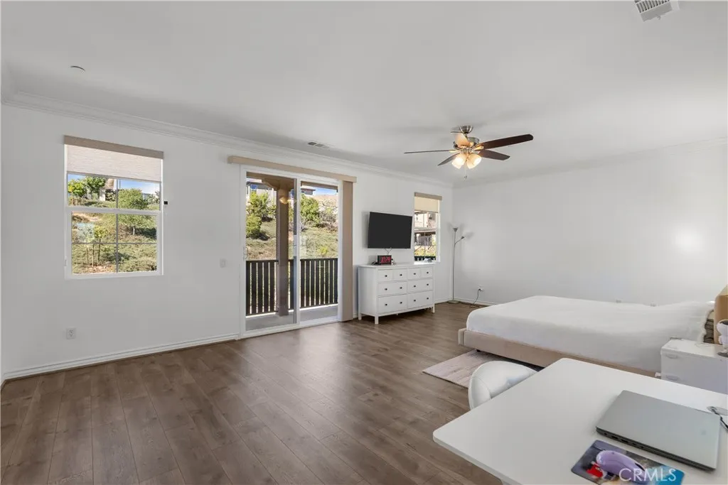 Welcome to 29031 Via Patina a beautifully upgraded 4-bedroom, 3-bathroom solar-powered home located in the prestigious gated West Hills community of Valencia. With 2,351 sq. ft. of living space, this home offers the perfect balance of comfort, style, and functionality. Step inside to a dramatic two-story foyer with wrought iron railings and rich hardwood floors. The open-concept living room, complete with a cozy fireplace, flows seamlessly into the dining area and gourmet kitchenfeaturing stainless steel appliances, a five-burner cooktop, and a large granite island perfect for entertaining. Downstairs offers a full bedroom and bathroom, ideal for guests, in-laws, or a home office. Upstairs, youll find two spacious secondary bedroomsone with its own private balcony and stunning mountain viewsplus a convenient laundry room with built-in cabinetry. The luxurious primary suite is a true retreat with a private balcony, perfect for relaxing mornings or evenings. Enjoy views of the expansive, pool-sized backyardready for outdoor living or your dream upgrades. This smart home is equipped with solar panels and modern tech for energy-efficient, easy living. Located within award-winning school boundaries (West Creek Academy, Rio Norte Junior High, and Valencia High), this home is perfect for families seeking top-tier education. As part of the West Hills community, enjoy resort-style amenities including: 3 sparkling pools A park with shaded playgrounds, picnic areas, and BBQs Basketball courts, paseos, hiking trails, a clubhouse, and a fire pit All this just minutes from shopping, din