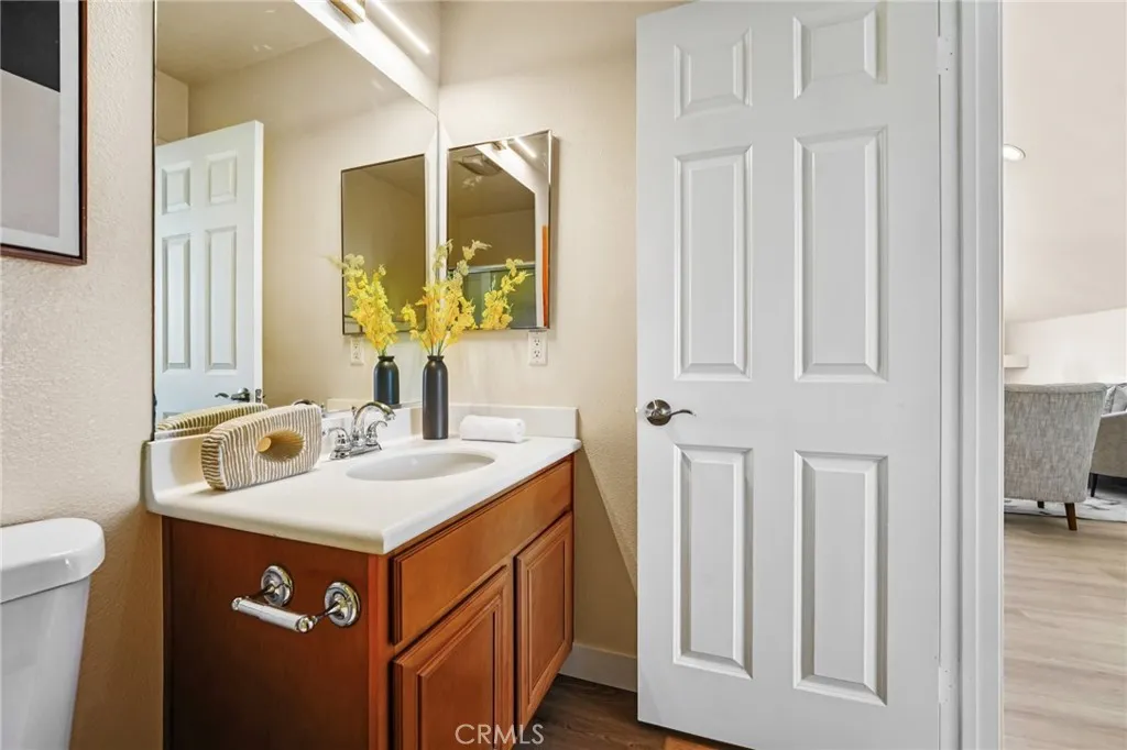 Discover unparalleled luxury and modern sophistication in Eastvale! This meticulously designed with Remodel Kitchen, Fresh Paint and New Flooring residence offers the perfect blend of modern elegance and comfortable living. Boasting 5 bedrooms and 5 bathrooms, this 3-story home is a true gem in the heart of a vibrant and convenience neighborhood. Step inside to discover a spacious living room with large windows that bring bright natural sunshine. Then it guides you to the bedroom with a full bath on the left side. it's convenience for parents and accommodating guests. The remodel kitchen is a chef's delight, featuring island, stainless built-in steel appliances, new granite countertops and new cabinets providing ample space for storage. It is open to the eating area and family room. There is a fireplace in the family room making it cozy and warmth. It's an ideal space for both everyday living and entertaining. You will find a master and additional 3 bedrooms on the second floor that two bedrooms sharing a full bath and one room appointed its own bathroom. The master suite is a true retreat, featuring a large walk-in closet, ensuite bathroom with double vanities, and a soaking tub. The additional bedrooms are generously sized and appointed a well-full bathroom. The laundry room is also on the second level. Continue to step on the 3rd level, there is a large open space area with a closet and full bath. It's flexible space with multi-use as extra bedroom, office, entertainment or playroom. The backyard offers ample space for relaxation and entertainment, with a covered patio,