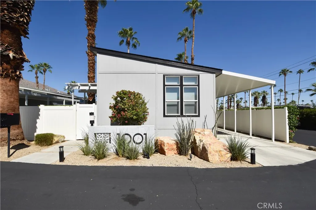 This gorgeous 2-bedroom, 2-bath midcentury modern mobile home with unobstructed mountain views is in excellent condition and shines with pride of ownership. Filled with natural light throughout, it offers a bright and welcoming atmosphere paired with a modern design and functional layout with a spacious floorplan. You'll enjoy the quartz countertops with waterfall edge and beautiful tile flooring throughout with ample storage. As one of the larger homes in the park, it provides plenty of comfortable living space for everyday life or entertaining. Move-in ready and waiting for its next owner, this home is a must-see! Buyer must get approved through the park. Buyer pays all utilities per consumption with the exception of water and trash services that are charged as a small flat fee.