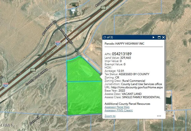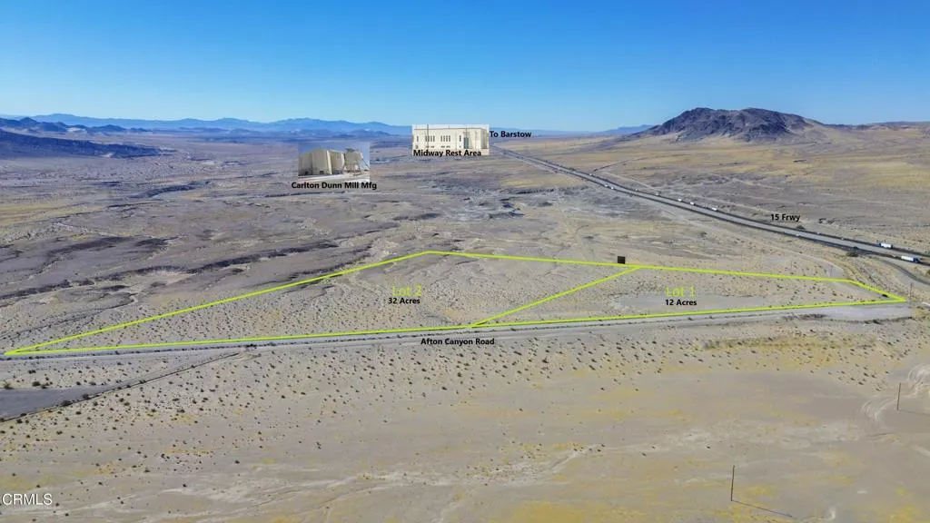 This 44-acre property is located on the15 Freeway Off-Ramp at Afton Canyon Road, between Barstow and Baker CA. The ideal use for this property would be a Gas Station. Two parcels are included. The front parcel is 12 acres, it is zoned Rural Commercial, it has approx. 400 feet frontage along the 15 Freeway. The second parcel is 32 acres, it is zoned Resource Conservation, both properties have approx. 1,000 feet along Afton Canyon Road. The proposed project for the front parcel is a one-story truck stop building with retail services, a fast-food restaurant, a one-story auto repair building with two bays, an auto fuel canopy with 12 fueling stations and a truck fueling canopy with 8 fueling stations. Property is also a good location for a Construction Site for the High Speed Brightline West Train going from Rancho Cucamonga to Las Vegas. This is also a good location for a Truck Terminal, Freight Terminal or Distrubition Center. This property is visible from the Midway Rest Area on the 15 Frwy approximately 4 miles to the south. From Barstow CA it is approximately 40 Miles. From L.A, O.C take the 15 Freeway to Afton Canyon Road. The property is the Off-Ramp.If you can see yourself investing in this property and you feel now is the time Call/Write Now!