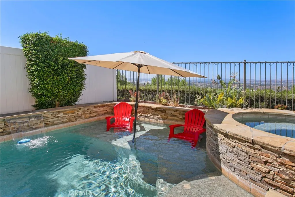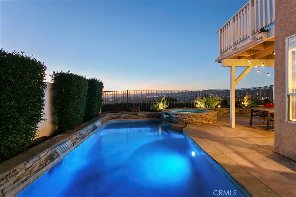 The home everyone wants to go to. Nicely nestled on a quiet cul-de-sac, high in the hills of Anaheim. Spectacular views enjoyed from the kitchen, living room, family room, primary bedroom and backyard, while lounging on the deck, relaxing in the Jacuzzi or gathering around the fire pit. Enter into the living room with high ceilings for that large open feel. Kitchen opens to the family room with wonderful flow to the backyard for exceptional indoor/outdoor entertaining. The spacious Primary bedroom offers gorgeous views, a beautiful ensuite bathroom and viewing deck. Two secondary bedrooms and a secondary bath complete the upstairs. The backyard is well set up for entertaining with a well positioned pool with Baja-step, an elevated Jacuzzi to enjoy the views, built in fire pit and plenty of space for seating. The two car attached garage offers abundant storage and car-charger. Newer solar panels provide lower energy costs. Inside laundry. Top-rated schools. A wonderful neighborhood close to restaurants, shopping, parks, golf, entertainment, and easy freeway access. Quiet neighborhoods, beautiful hills and a constant breeze all provide that feeling of being away from it all while still being close to so much. A truly wonderful place to live.