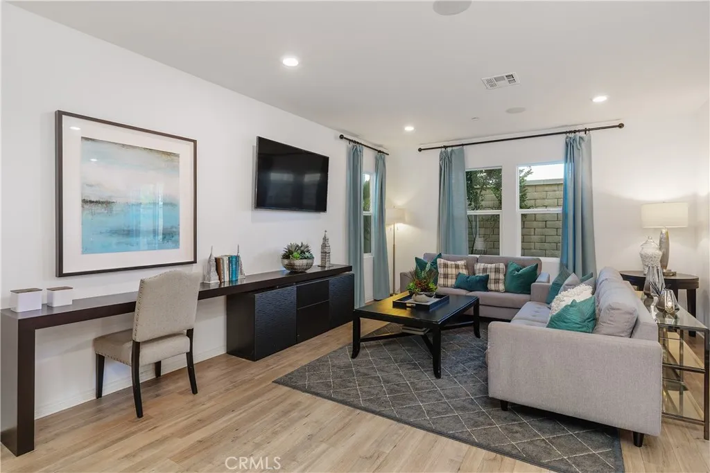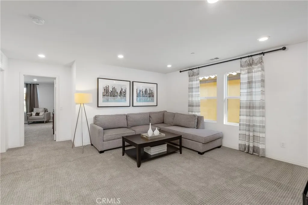 Built in 2017, this former builders model home is a Modern Energy Star Certified property designed for comfort and efficiency. Offering a flexible layout with four bedrooms and three bathrooms (public record shows three bedrooms), this residence features a convenient first-floor bedroom and full bath.Spanning approximately 2,439 square feet, the home showcases an open and airy floor plan filled with natural light. The main level features durable wood-style flooring, while the upper level and stairs are finished with carpet for comfort. The chefs kitchen includes a large center island with seating, stainless steel appliances, solid-surface countertops, a gas range, plentiful cabinetry, a walk-in pantry, and an adjoining dining area that flows seamlessly to a private enclosed patioideal for both everyday living and entertaining.Upstairs, a spacious loft offers versatility for whatever suits your needs. The primary suite includes a walk-in closet with custom organizers and a spa-inspired en-suite bathroom with dual vanities, soaking tub, and separate shower. Two additional upstairs bedrooms share a full bath, while a second-floor laundry room adds everyday convenience.Located in the gated Harvest community, residents enjoy resort-style amenities including a pool and spa, clubhouse, fitness center, BBQ areas, community gardens, and playgrounds. Additional highlights include an attached two-car garage, tankless water heater, low HOA dues, and proximity to the Claremont Colleges, shopping, dining, schools, and freeway access.This upgraded, move-in-ready home is a rare opportunity