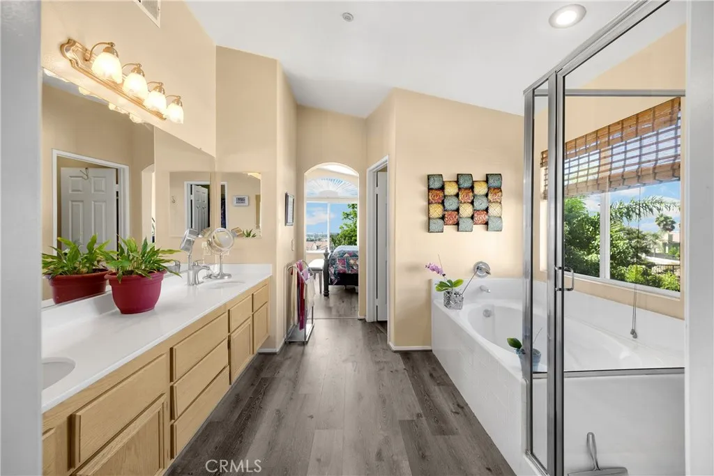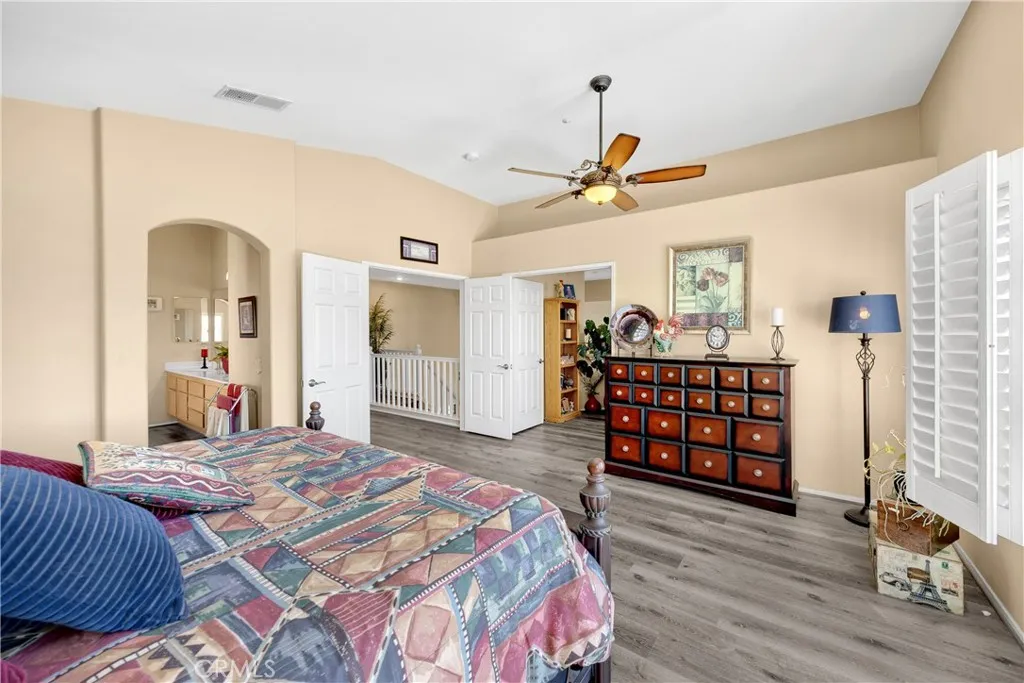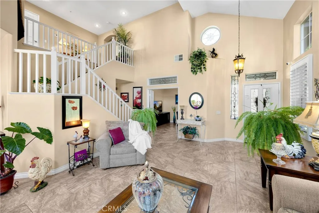 Welcome to your dream home! Tucked away in the highly sought-after Hunters Ridge Community, this captivating two-story home perfectly blends charm, comfort, and breathtaking mountain views. Ideally located to enjoy the best of both Rancho Cucamonga and North Fontana, this residence also falls within the prestigious award-winning Etiwanda School District, a true advantage for families seeking top-tier education. From the moment you arrive, youll notice the curb appeal and spacious 3-car garage. With no rear neighbors, this home offers an extra layer of privacy thats hard to find. Step inside and be welcomed by soaring vaulted ceilings and an abundance of natural light, filling the open and airy living spaces. The thoughtfully designed floor plan offers a seamless flow, starting with the bright living room, moving into the cozy family room, and opening into the kitchen, an ideal setup for both lively gatherings and everyday relaxation. This home offers generously sized bedrooms with comfort and versatility for your familys needs. The Primary Suite features a large walk-in closet, dual sink vanity, soaking tub and separate shower. This suite is complete with its own Private Retreat Balcony overlooking the foyer and midnight city views. Outside your doorstep, enjoy the convenience of The Falcon Ridge Town Center, for convenient shopping and dining, parks, and easy freeway access, all while savoring the peaceful suburban lifestyle that Hunters Ridge is known for. Dont miss the opportunity to make this spectacular home yours. Schedule your private showing today and step into the