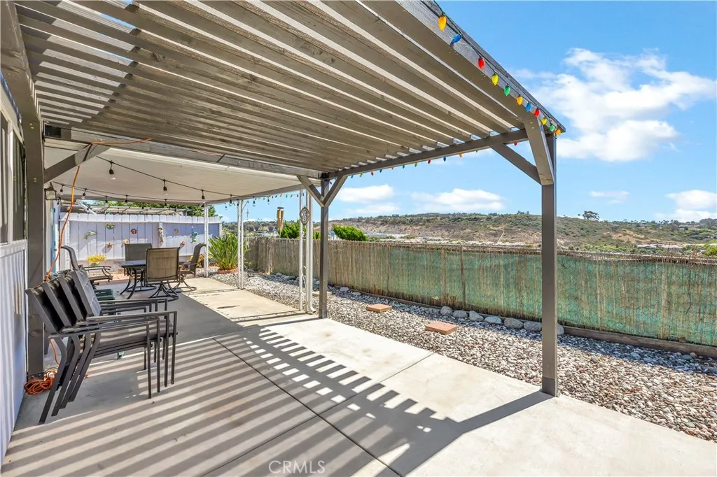 Charming and updated single-family 55+ residence located in the heart of Oceanside's Costa Serena with NO HOA payments! This delightful home features 2 cozy bedrooms, 1 modern bathroom, an open-concept living area, and a stylish, fully equipped kitchen adorned with stainless steel stove, elegant gray cabinetry, and sleek countertops. The spacious living room seamlessly merges into the dining space, ideal for entertaining. Natural light floods the interiors, creating a warm and inviting atmosphere that complements the soothing color palette and plush carpeting throughout. Each bedroom offers comfort and tranquility, with the master bedroom boasting direct access to the covered outdoor patio. Outside, the extended patio provides a perfect setting for relaxation and enjoys picturesque views of the surrounding landscapeideal for dining al fresco or enjoying cool evenings. Low-maintenance landscaping and a serene location add to the peaceful charm of this home. ****The home boasts a new roof, new pergola, new windows, new paint, additional concrete, laundry relocated to the garage, and a VIEW!!!! Enjoy proximity to local amenities, schools, and quick access to freeways for a convenient lifestyle. This property is a must-see for anyone seeking a comfortable and stylish home in Oceanside!