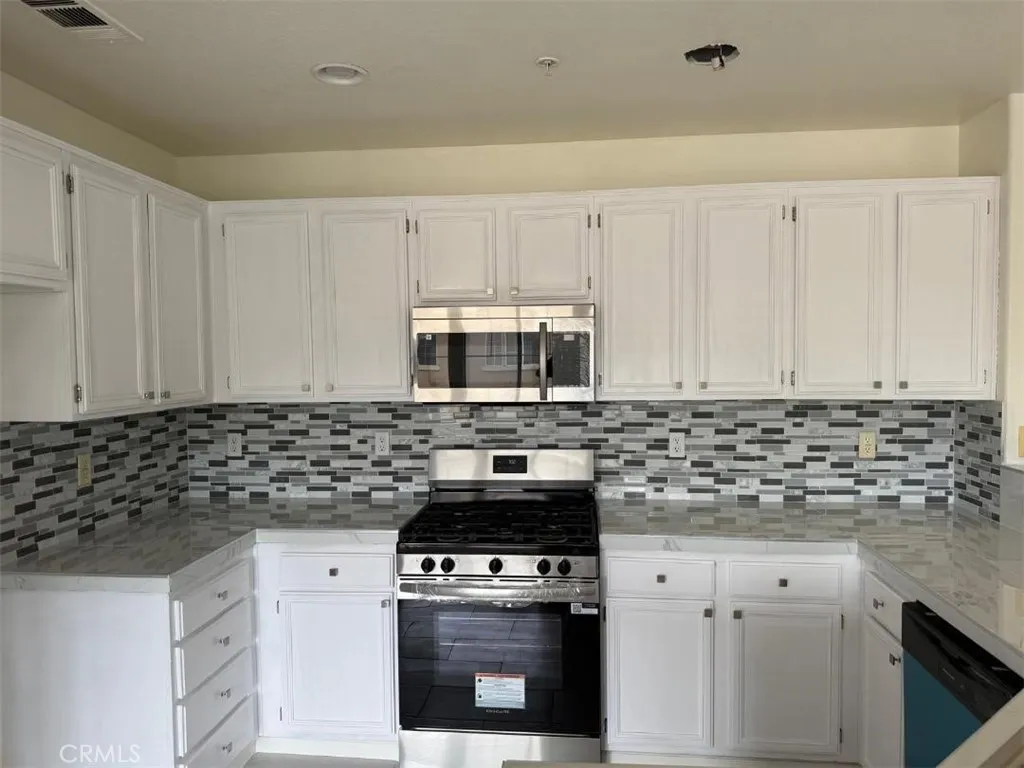No detail was overlooked in the top-to-bottom renovation of this sophisticated three-bedroom, two-bathroom condo. The entry leads to a staircase that leads to a phenomenal living-dining-kitchen area, where a large central island provides a natural separation and generous prep space. With an abundance of natural light streaming in, the living room / dining room opens to a private balcony. The spacious Master bedroom features a large walk-in closet and a private, upgraded dual sink plus bathtub bathroom, while the two additional bedrooms offer plenty of closet space and share a well-appointed second bathroom. Separate Washer & Dryer Room and freshly Epoxied 2 car garage. ALL Freshly Painted. New Carpet, New Tiles in Kitchen & Bathrooms, Freshly Painted Kitchen Cabinets with a New Sink and Tile Flooring, New Bathroom Vanities, Sinks, Faucets & Mirrors and Tile Flooring and Brand-New Kitchen Appliances Located close to wine country, Pechanga, golf, shopping and distinguished Temecula Valley Unified District Schools. Auberry place amenities featuring pool, spa, playground, picnic area.