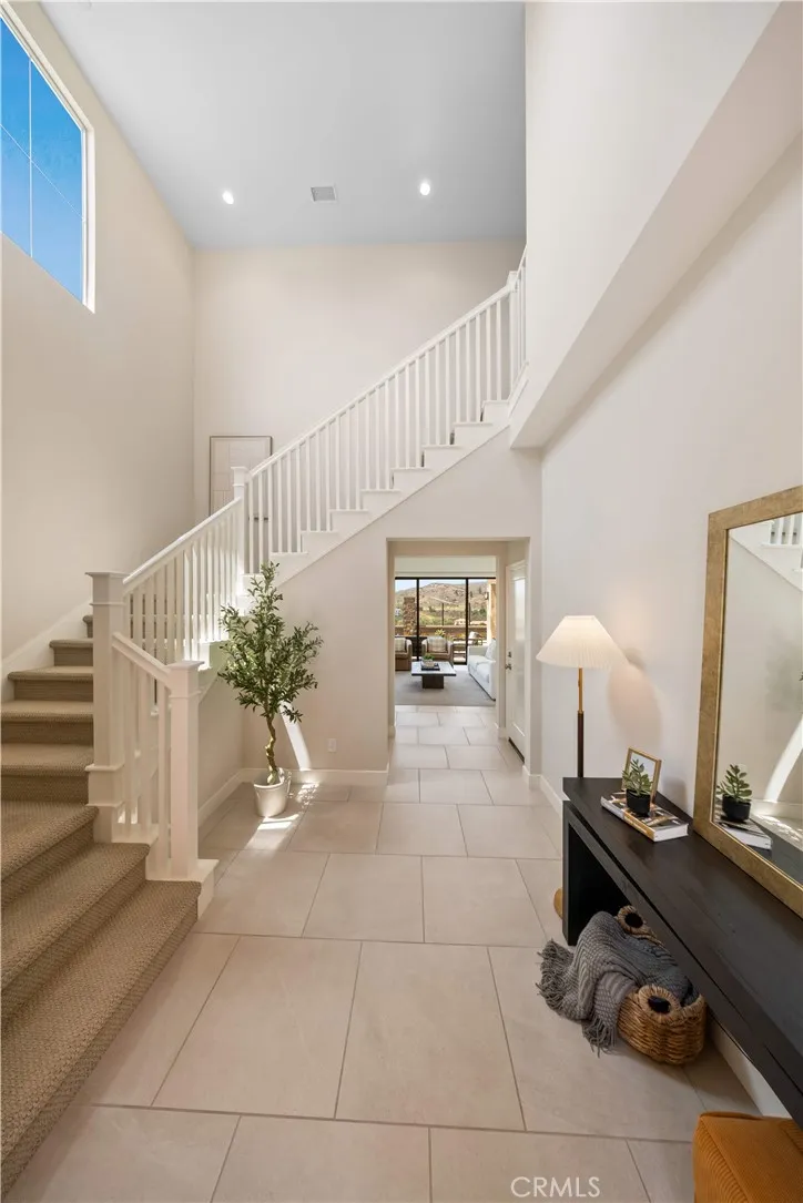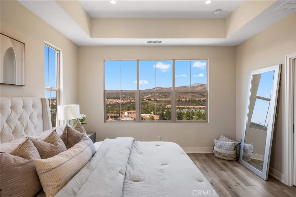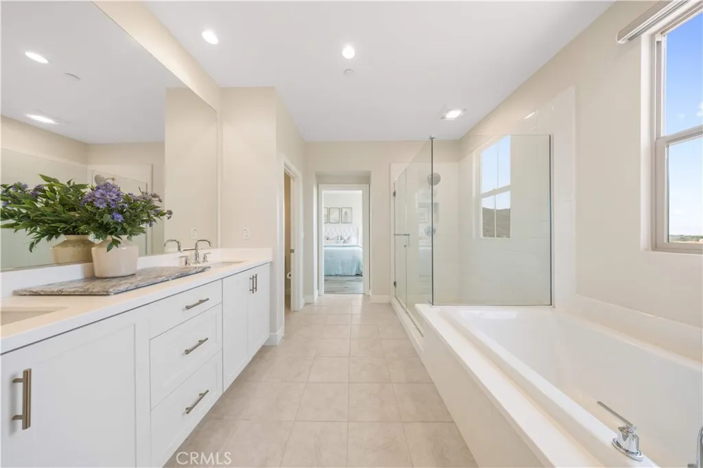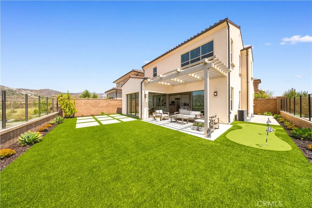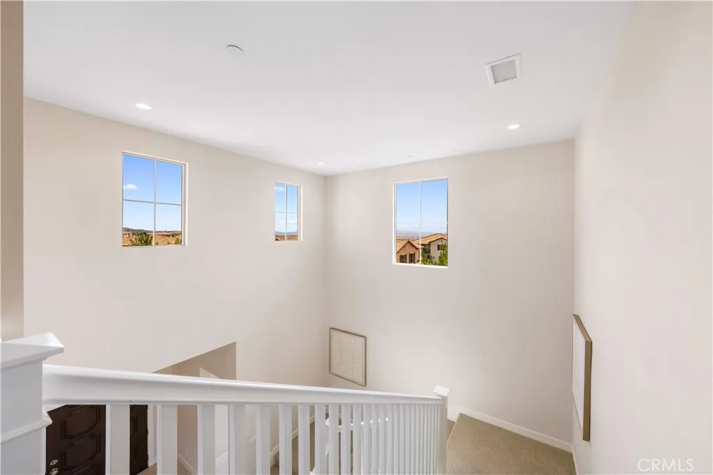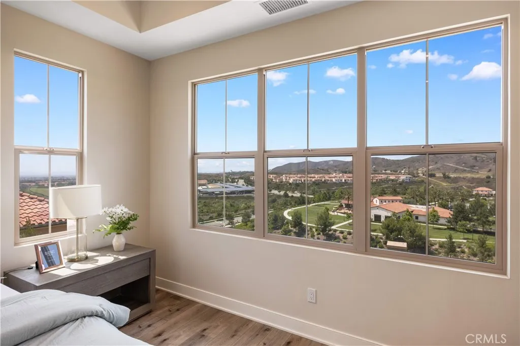 View!View!City View home! Cornet lot!This stunning 3-bedroom, 2.5-bathroom home offers a modern, comfortable living experience. The elegant foyer leads to a spacious living area with panoramic sliding doors that open to a generously sized backyard, perfect for outdoor activities. The gourmet kitchen features stainless-steel appliances, a custom backsplash, a 6-burner cooktop, and a large center island with a breakfast bar. Upstairs, the serene master suite includes a walk-in closet and a deluxe ensuite bathroom with dual vanities, a soaking tub, and a separate shower. Two additional bedrooms and a full bathroom provide ample space for the family. Convenience is key with a dedicated laundry room, a powder room on the first floor, and an attached two-car garage. High ceilings throughout the home create an airy and open atmosphere. The community offers access to the Irvine School District, easy highway access, nearby parks, and community pool. Dont miss the opportunity to own this best view home in Portola Springs!