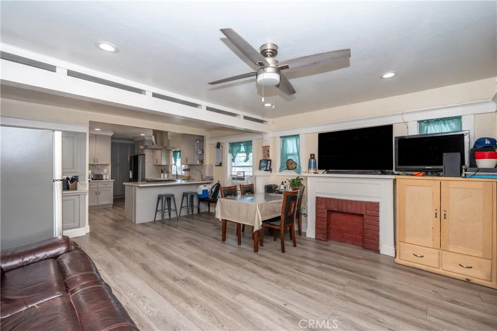 Wow! This is a must see and must have home in a lovely neighborhood of Riverside. This home features 3 bedrooms, 2 bathrooms, 924 living saft and 8,276 sqft lot. This home features a remodeled kitchen, Quartz counter tops, kitchen is open to the living room with chimney, laminate flooring throughout the home, new exterior paint, dual paned windows, recessed lighting, all electrical has been upgraded, all plumbing has been upgraded and a detached 2 car garage that has been converted into living space. The Backyard features back patio, garden beds, storage shed, and side gate access. Perfect for parties with family and friends to gather and enjoy. The location of this home is great just minutes away from the 91 freeway.