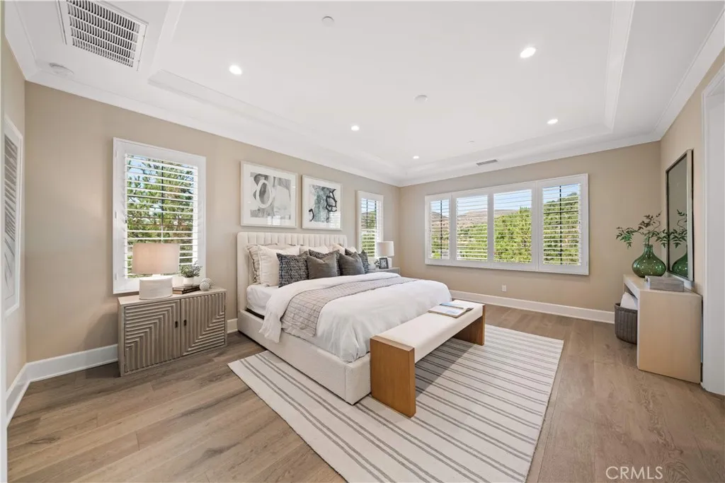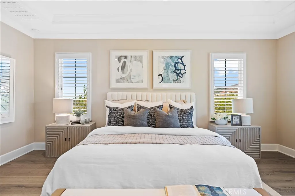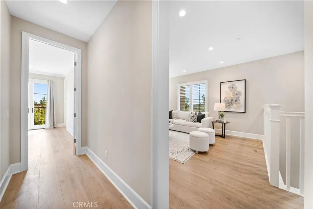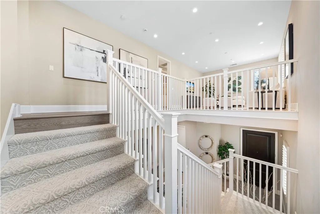 Tucked away on a premium corner lot with no neighbors on three sides, this beautifully upgraded 4-bedroom, 4-bathroom home offers both privacy and elevated living in one of Irvines most desirable communities. Designed with comfort and flexibility in mind, the open-concept main level features a bedroom with a full bath, ideal for guests or multi-generational living, along with a spacious great room and a chef-inspired kitchen showcasing quartz countertops, designer backsplash, and custom cabinetry. Upstairs, the home continues to impress with a generous primary suite, two additional en-suite bedrooms, and a versatile loft perfect for a home office, media space, or playroom. Throughout the home, thoughtful upgrades include engineered hardwood flooring upstairs, premium tile and fixtures, plantation shutters, whole-house water filtration, and a security system. Enjoy sweeping mountain and city views from the upper levelon clear nights, even catch a glimpse of Disneylands fireworks from the comfort of home. The spacious side yard offers ample room for outdoor entertaining and gardening. Set within a resort-style community featuring a pool, spa, clubhouse, parks, and walking trails, and located in the award-winning Northwood High School district, this exceptional home offers the perfect blend of location, layout, and lifestyle.