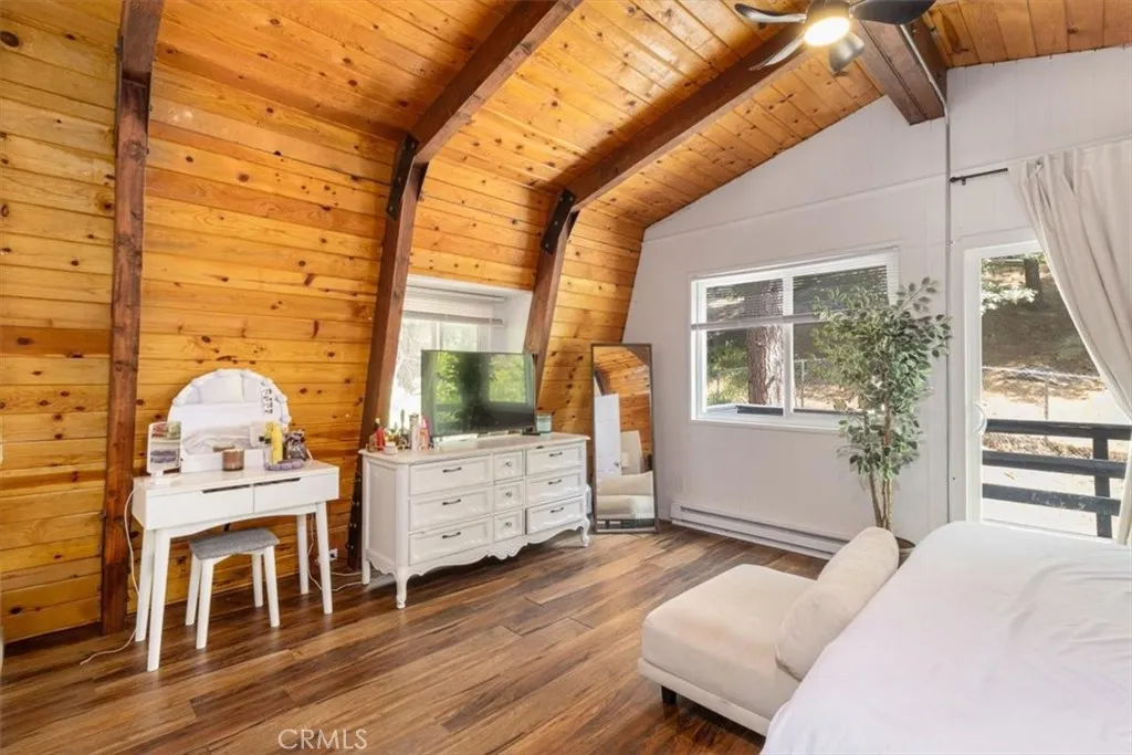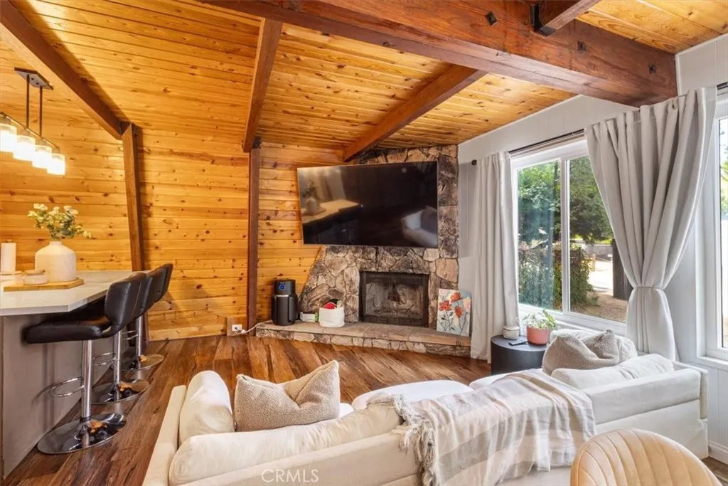 Turnkey Cabin in Crestline Near Lake Gregory & Popular Hiking Trails! 3 Bedrooms 2 Full Bathrooms 1,380 Sq. Ft. 5,059 Sq. Ft. Lot Built in 1978 This beautiful mountain retreat is move-in ready and full of charm. Featuring wood floors throughout, an upgraded kitchen with quartz countertops, and a cozy fireplace in the living room, this home blends modern upgrades with a warm, rustic feel. The bathrooms have been tastefully updated, and the stunning wood ceilings add that special mountain touch. The layout offers convenience and comfort with 2 bedrooms upstairs, including the primary suite with a private balcony and master bathroom, and 1 bedroom plus a full bath downstairs along with a separate laundry area. Additional highlights include fresh interior and exterior paint, plenty of parking for guests, RV parking, and a spacious backyard ideal for family gatherings. Located close to Lake Gregory, youll also enjoy easy access to Downtown Crestline, restaurants, shops, and local conveniences. Dont miss out on this perfect mountain getaway or full-time residencecome see all this home has to offer