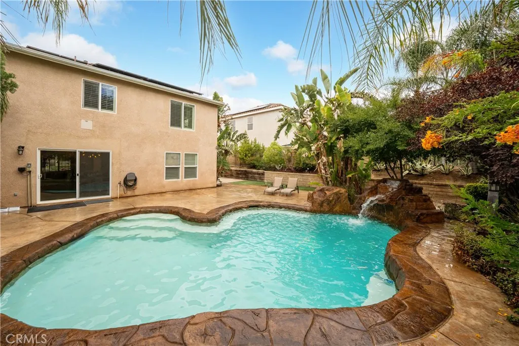 Your Perfect Home Awaits Tucked away on a tranquil cul-de-sac and framed by a peaceful hillside, this 2,247 sq. ft. residence blends luxury, comfort, and style in every detail. Step inside to a stunning remodel where an open-concept floor plan and elegant tile flooring set the tone. The chef-inspired kitchen boasts custom cabinetry, quartz countertops, and an oversized island designed for gatherings and entertaining. Plantation shutters throughout the home allow you to set the perfect balance of natural light and privacy. The owners suite is a true sanctuary, featuring dual vanities, a spacious walk-in shower, a soaking tub, and a generous walk-in closet. Upstairs, a sprawling loft doubles as a second owners suite, complete with a tiled gas fireplace for added warmth and charm. Outdoors, your private tropical oasis awaits. Relax by the sparkling pool with its cascading waterfall or entertain in the beautifully finished backyard designed for year-round enjoyment. Additional highlights include a two-car garage with potential side parking, plus energy-saving solar panels to keep monthly expenses low. This exceptional property offers the perfect backdrop for making memories with family and friends.