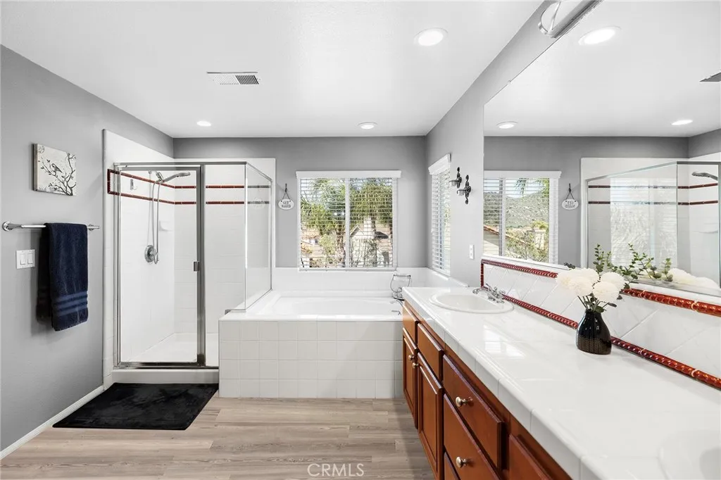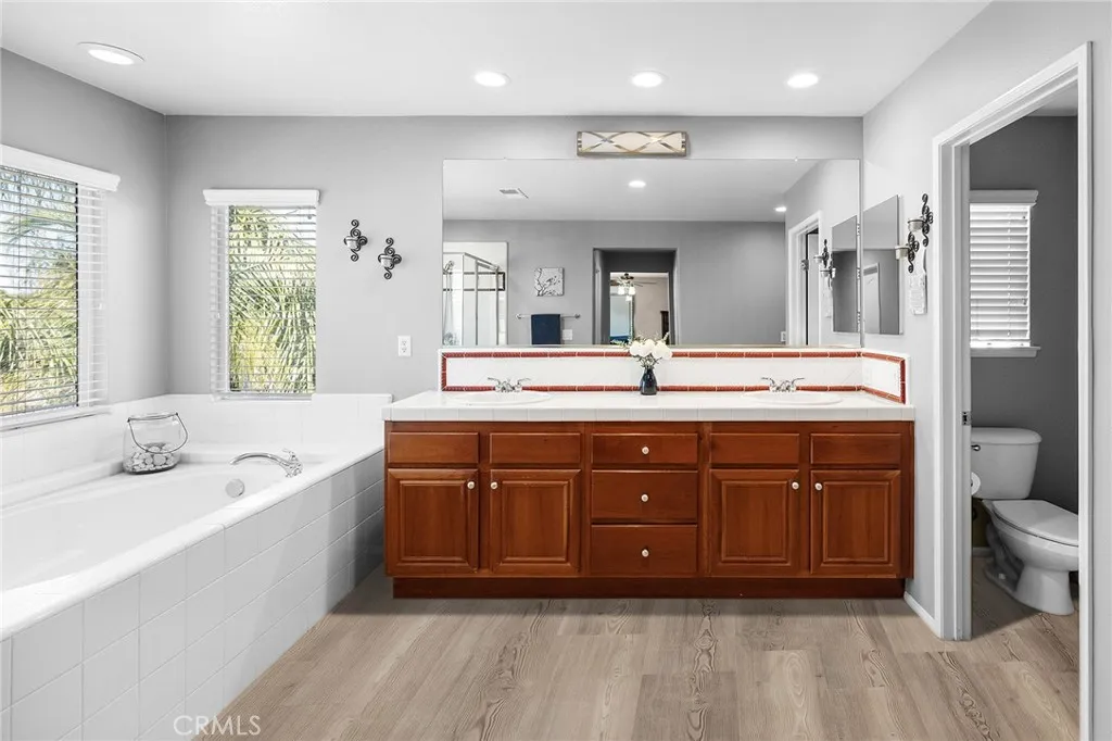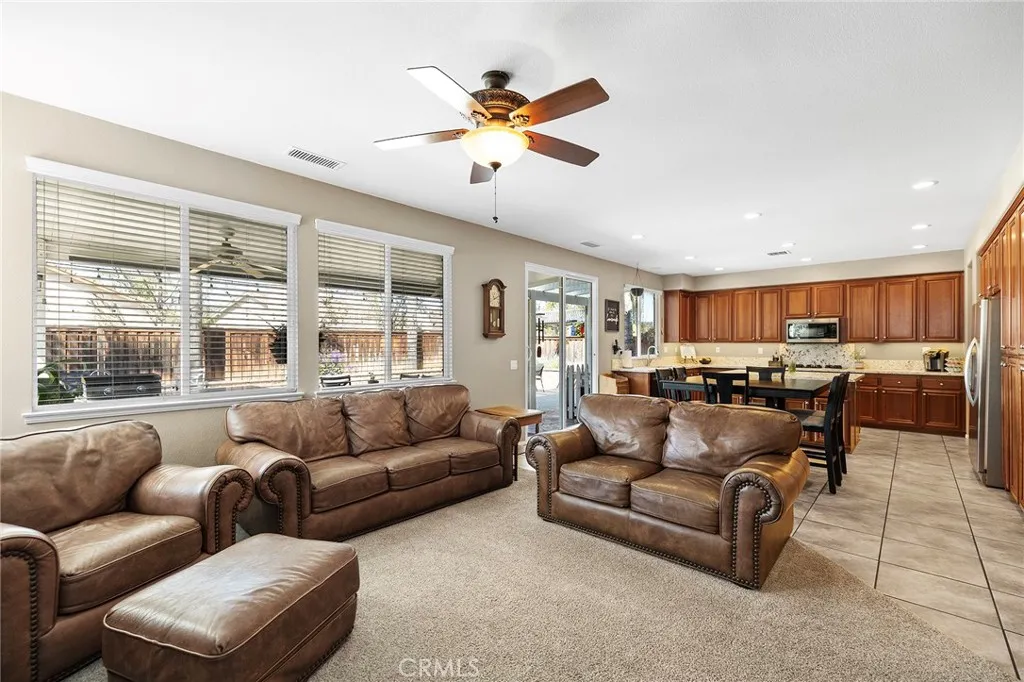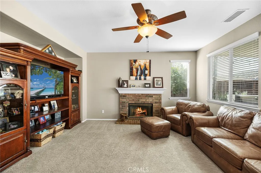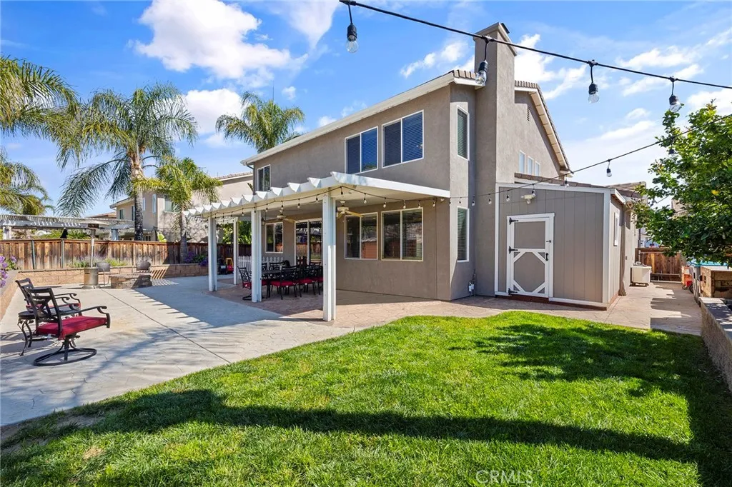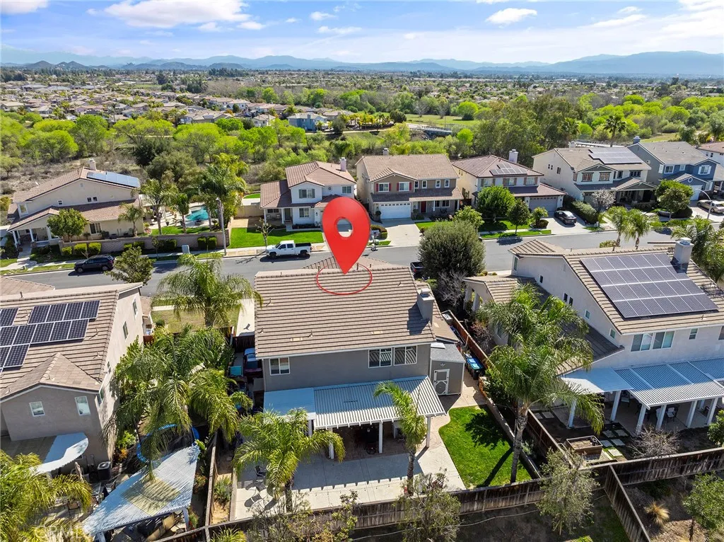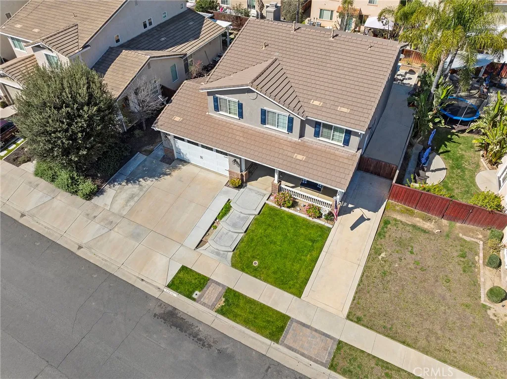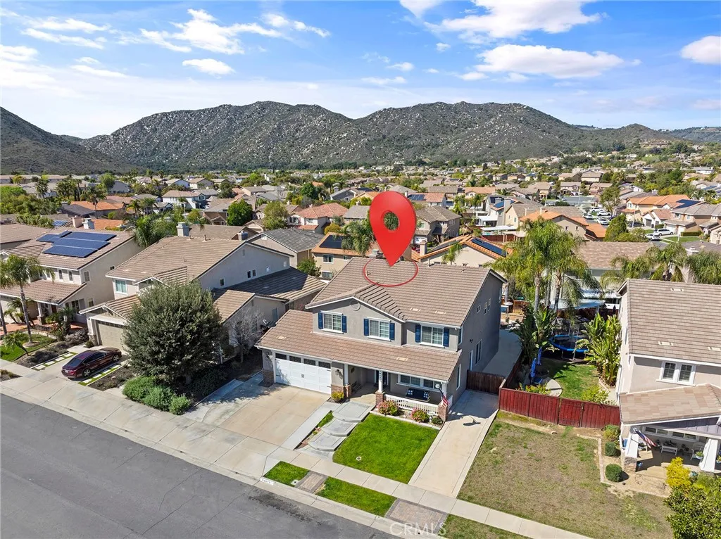 Welcome to Copper Canyon living! Nestled at the end of a quiet cul-de-sac in one of West Murrietas most sought-after neighborhoods, this beautiful home offers NO HOA, low taxes, and walking distance to award-winning Cole Canyon Elementary. Step inside to an inviting open floor plan featuring a spacious formal living and dining room, a cozy family room with fireplace, and an oversized chefs kitchen complete with upgraded quartz countertops, a massive center island, stainless steel appliances including a double oven, plus an abundance of cabinetry. Upstairs, youll find the large primary suite with dual sinks, soaking tub, step-in shower, and walk-in closet. Three additional bedrooms and a hall bath with dual sinks and a tub/shower combo provide plenty of room for family and guests. Convenient upstairs laundry adds ease to everyday living. The backyard is an entertainers dream with a large Alumawood covered patio, stamped concrete, lush grass, a firepit, block wall, and a custom shed. Excellent curb appeal includes a charming front porch, mature landscaping, custom concrete, and an insulated garage door. You will love the whole house water filter, a water softener, plus a whole house fan. And dont be fooled by the photosthis is a tandem 3-car garage! This Copper Canyon gem combines comfort, function, and style in an unbeatable location.