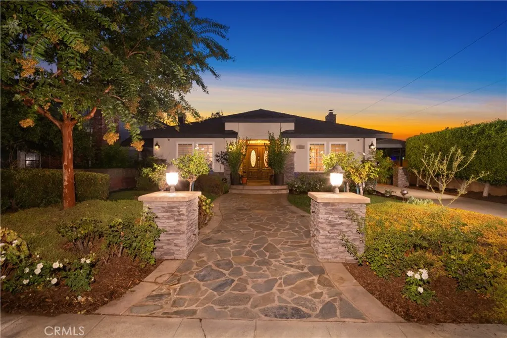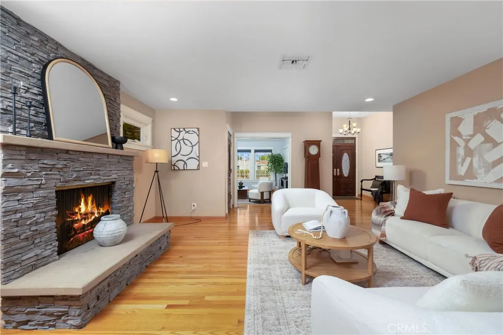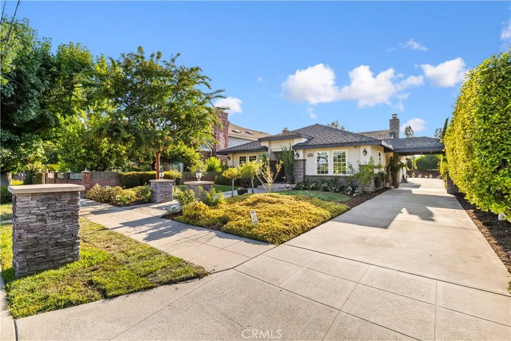 A Residence that beautifully balances timeless architecture, modern updates, and an expansive lot designed for both comfort and entertaining. From the moment you arrive, this home captures your attention with its stately curb appeal. A stone-accented faade and elegant double-door entry are framed by lush, manicured landscaping and illuminated by classic front yard light pillars. A graceful porte cochre leads to the attached 3 car garage, offering both convenience and style. Inside, a spacious 2,505 sq. ft. floor plan unfolds with an inviting flow, highlighted by rich hardwood flooring, recessed lighting, and thoughtfully selected designer finishes. The formal living room, anchored by a decorative fireplace, sets a warm and welcoming tone for gatherings, while the elegant dining room provides a dedicated space for memorable occasions with family and friends. At the heart of the home lies the chef-inspired kitchen. Outfitted with Brazilian Cherry wood cabinetry, gleaming granite countertops, and high-end stainless steel appliancesincluding a built-in refrigerator, it offers both function and beauty. A center island with bar seating encourages casual conversation, while a sunlit breakfast nook and overhead skylight create a bright, cheerful ambiance for everyday meals. The homes 4-bedroom, 3-bathroom layout has been carefully designed to accommodate a variety of lifestyles. The primary suite is a true retreat with ample space, abundant natural light, and a generously sized en-suite bathroom. Two additional bedrooms share a spacious Jack-and-Jill bathroom, thoughtfully laid out