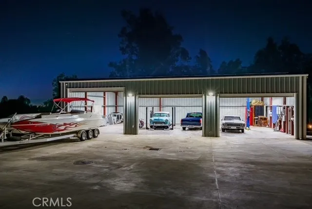 2 PARCELS totaling 2.22 ACRES! NEW VIDEO! 2 DRIVEWAYS VERSATILE, PRIVATE & MOVE-IN READY! DOWNSTAIRS BEDROOM! NO MELLO ROOS & NO HOA! Property includes 2 contiguous parcels totaling approx. 2.22 acres(96,703 sq ft)each with its own driveway & private entrance & ideal for seamless pull-through access for trailers, RVs, & equipment. The steel workshop is approx 2,400 sq ft(40 x 60) Industrial roll-up doors,bathroom, Wheel Vehicle Lift, 2 Car Moveable Ramp Lift, Power Ready for High AMP welders; ect. Bring your boats, RVs trailers, trucks, & horses.Highlights: 2 Driveways, Easy Maneuverability for trucks, trailers, RVs, and boats. Horse property, Attached 3-car garage w/ direct access. Detached 2-car garage w/ a/c w/ ADU potential. Expand w/ included blueprints for future addition on the lower parcel & available to expand the main residence into a custom estate. Enter through the front doors & are welcomed by a stunning, custom-built 700+ gallon saltwater aquarium, a true showpiece & it's architecturally designed, easy to maintain, tank includes dedicated sump room located in the attached garage. Enjoy the life at the bar; perfect space to relax & enjoy the tranquil underwater show. The home features 4 bedrooms & 3 full bathrooms, including a downstairs bedroom & flexible dining area; both ideal for a home office, gym, or creative workspace. The open-concept kitchen & great room flow effortlessly through bi-fold sliding doors to the covered patio, pool, and spa. The primary suite includes a private balcony w/ views of the pool and breathtaking sunsets.The resort-style backyard