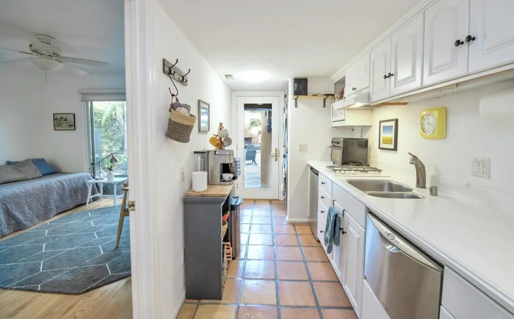 Nestled in the coveted Fire Mountain neighborhood of Oceanside, this custom-built residence blends luxury, functionality, and coastal charm. With 4 bedrooms on the entry level, a versatile bonus room, 2.5 baths, and an expansive chefs kitchen upstairs, the home is designed for both comfortable family living and effortless entertaining. The primary suite is a tranquil retreat with private access to a serene side yard and a spa-inspired bathroom featuring a freestanding tub. The east wing offers three additional bedrooms, a full bath, and a secondary kitchen with a stackable washer and dryerperfect for extended family, multigenerational living, guests, or rental opportunities. Upstairs, an open-concept layout showcases the custom chefs kitchen with abundant storage, seamlessly flowing into the dining area and covered verandaboth with inspiring ocean views. Sunlight floods the living and dining rooms through oversized windows, while the adjoining patio enhances the indoor-outdoor coastal lifestyle. A flexible bonus room with cabinetry and a sink sits just off the back deck, ideal for an art studio, home office, gym, or additional bedroom. Multiple outdoor spaces invite relaxation and entertaining. Gather by the grand fireplace on the east side yard patio, savor ocean breezes from the upstairs deck with its built-in BBQ and refrigerator, or retreat to the west side yard for quiet reflection. A cavernous three-car garage provides generous storage for surfboards, e-bikes, and all your beach essentials. Just minutes from Oceansides beaches and with easy access to the 5 and 78 free