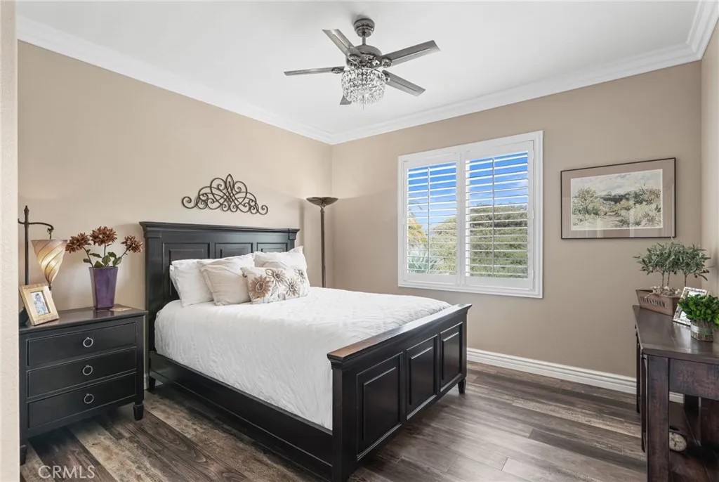 Welcome to the Secured Gated Community of Vintage in Redhawk. This BEAUTIFULLY UPGRADED Home is a private oasis on a stunning cul-de-sac at the highest point of the neighborhood! The home showcases a unique floor plan and is ready for the perfect family! Come through the front gate and into the serene courtyard and enjoy the private sitting area between the single (perfect mancave) and double garages. Inside the stunning custom front door is a formal entry that opens to a grand living room. Crown molding is the perfect accent along with plantation shutters throughout. The family room features a surround sound system, stacked stone wall, media niche with shelves and a raised hearth with gas log fireplace. The remodeled kitchen offers beautiful white cabinets with pull out cabinets, stainless steel appliances, granite slab counters, walk in pantry, and opens to the nook area and family room. One bedroom, with a walk-in closet and full bath will be found on the main floor. Up the stunning remolded staircase, you will find the remaining bedrooms and laundry room. The oversized spacious primary suite has a walk-in closet, granite vanity counters, soaking tub and walk in shower with beautiful frameless glass. The jack and jill style secondary bath also features granite vanity counters. The backyard oasis offers a pebble sheen pool and spa with an in-floor cleaning system, fire pit, built-in BBQ and bar area with extensive use of stacked stone. It is the perfect way to entertain your family and friends. Situated in the highly sought-after Temecula Unified School Districtzoned for