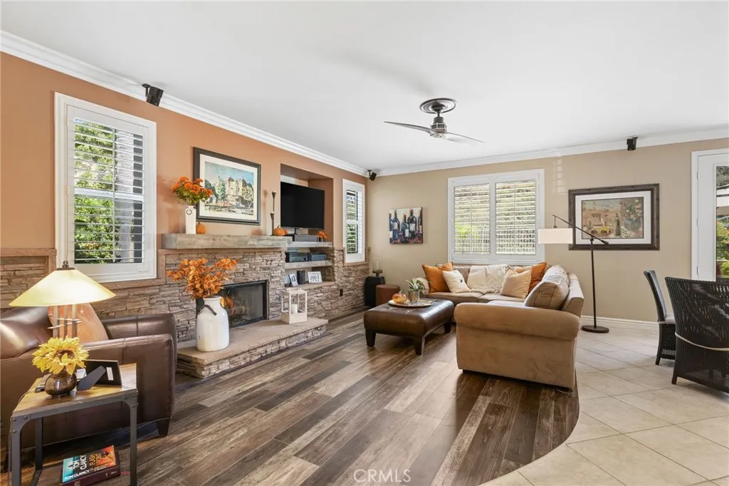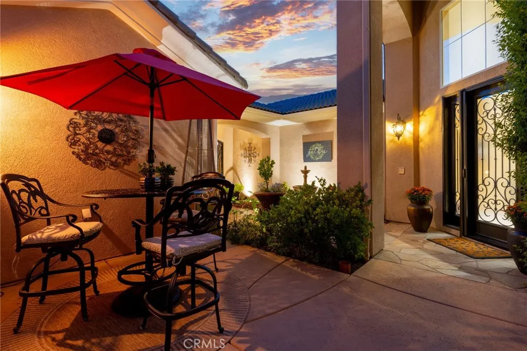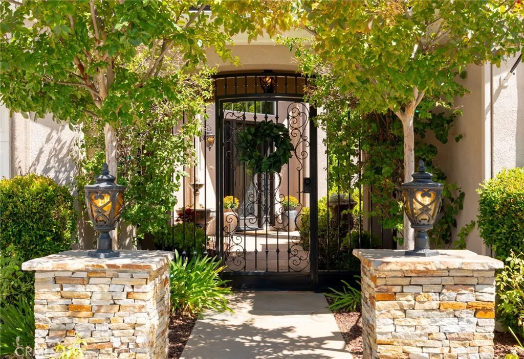PRICE ADJUSTMENT!! Welcome to the Secured Gated Community of Vintage in Redhawk. This BEAUTIFULLY UPGRADED Home is a private oasis on a stunning cul-de-sac at the highest point of the neighborhood! The home showcases a unique floor plan and is ready for the perfect family! Come through the front gate and into the serene courtyard and enjoy the private sitting area between the single (perfect mancave) and double garages. Inside the stunning custom front door is a formal entry that opens to a grand living room. Crown molding is the perfect accent along with plantation shutters throughout. The family room features a surround sound system, stacked stone wall, media niche with shelves and a raised hearth with gas log fireplace. The remodeled kitchen offers beautiful white cabinets with pull out cabinets, stainless steel appliances, granite slab counters, walk in pantry, and opens to the nook area and family room. One bedroom, with a walk-in closet and full bath will be found on the main floor. Up the stunning remolded staircase, you will find the remaining bedrooms and laundry room. The oversized spacious primary suite has a walk-in closet, granite vanity counters, soaking tub and walk in shower with beautiful frameless glass. The jack and jill style secondary bath also features granite vanity counters. The backyard oasis offers a pebble sheen pool and spa with an in-floor cleaning system, fire pit, built-in BBQ and bar area with extensive use of stacked stone. It is the perfect way to entertain your family and friends. Situated in the highly sought-after Temecula Unified School