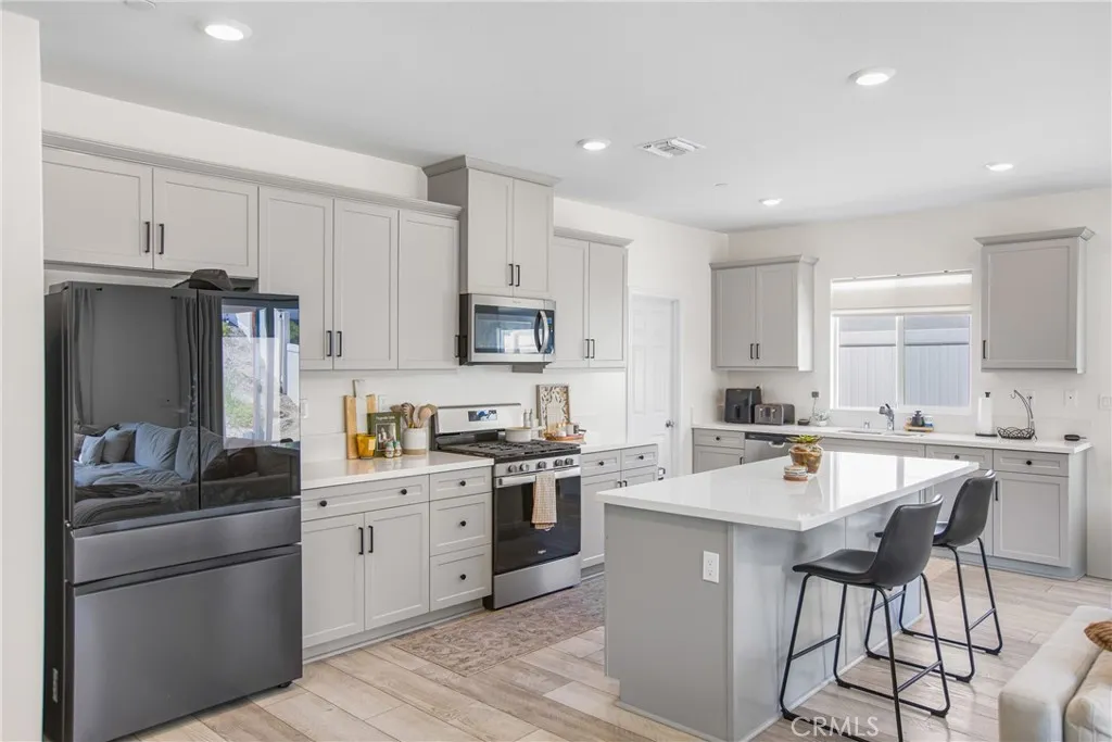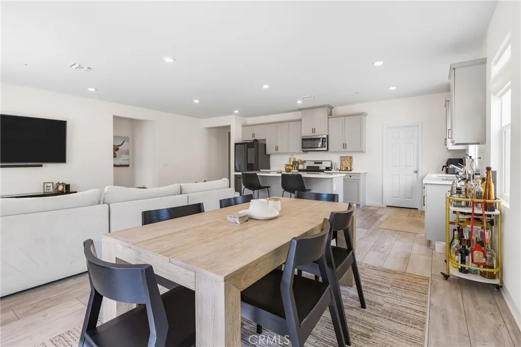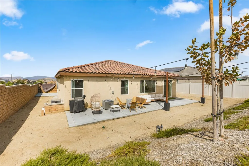 Welcome to this beautiful single-story home in the desirable Spring Mountain Ranch community of Riverside. Built in 2023, this residence offers comfort, style, and thoughtful builder upgrades throughout. Step inside to an inviting open-concept floor plan featuring 4 spacious bedrooms, 2 bathrooms, and approx. 2,106 sq ft of living space. The kitchen boasts a large center island, upgraded quartz countertops, upgraded flooring, and premium cabinetry, opening seamlessly to the dining and living areas perfect for both everyday living and entertaining. Additional touches like recessed lighting add warmth and style throughout. The primary suite offers an oversized bedroom with plenty of space to relax and unwind, along with a well-appointed ensuite bath, creating the perfect retreat. Set on a 7,405 sq ft corner lot in a quiet cul-de-sac, the property has been enhanced with an extended concrete driveway for additional parking and a backyard concrete patio, offering an ideal setting for outdoor relaxation and gatherings. Living here means enjoying the best of the Spring Mountain Ranch lifestyle surrounded by scenic mountain views, with community parks, playgrounds, and hiking/biking trails just steps away. Commuters will also love the convenient access to freeways, UC Riverside, shopping, and dining. With its builder upgrades, energy efficiency, and move-in ready condition, this home gives you all the benefits of a newer build without the wait. Its spacious layout, prime location, and community amenities make it the perfect blend of comfort, convenience, and value.