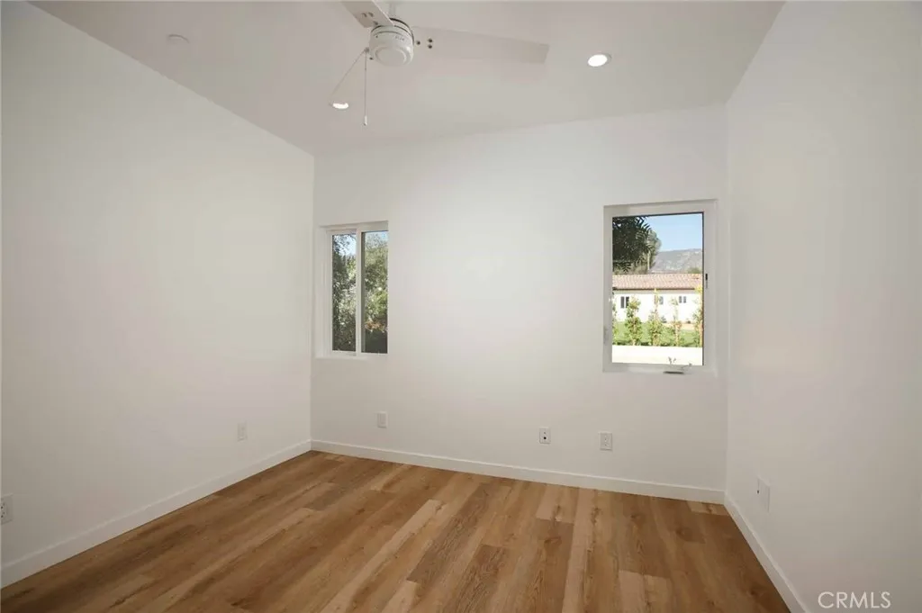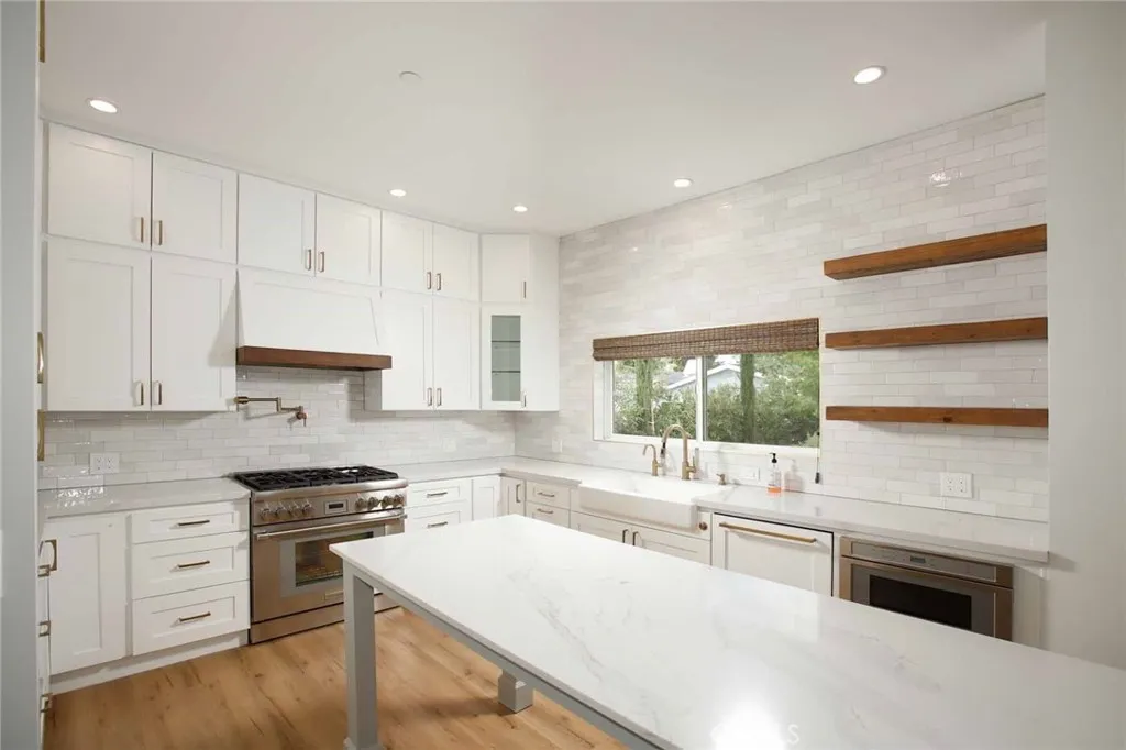 Welcome to an exceptional dual-residence property, a stunning showcase of modern design, luxury finishes, and flexible living. Situated on a huge beautifully landscaped lot. This estate features a main house with four bedrooms and three and half baths, and a separately addressed, fully permitted approx. 1,300 sq ft ADU with 3 bedrooms and 2 bathrooms. Inside the main residence, enjoy a chefs dream kitchen outfitted with WiFi-enabled Thermador appliances, including a 6-burner gas range, 48 panel refrigerator/freezer, 58-bottle wine fridge, micro drawer microwave, and panel dishwasher. Quartz countertops, subway tile, brass hardware, West Elm shelving, farmhouse sink, pot filler, and Delta Champagne Bronze fixtures elevate the aesthetic. A large island anchors the space, perfect for entertaining. The open-concept living area features a floor-to-ceiling stone fireplace with an electric starter, beautiful hardwood floors, vaulted beam ceiling, recessed lighting and dual paned sliders leading out the patio opening up to a serenely landscaped back yard. The primary suite is as luxurious as they come and the primary bath boasts a spa-like bath with an 84 double vanity, 55 freestanding soaking tub, rain head shower, and Kohler polished chrome fixtures. A spacious walk-in closet awaits your design. Three more large bedrooms and gorgeous bathrooms provide space for family and guest alike. Enjoy modern comforts with dual-zone WiFi-enabled HVAC, USB charging outlets, Cat5/coax wiring, indoor laundry with Whirlpool smart appliances, security camera/alarm system, and WiFi-controlled moto