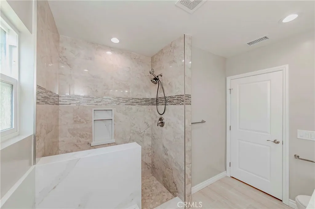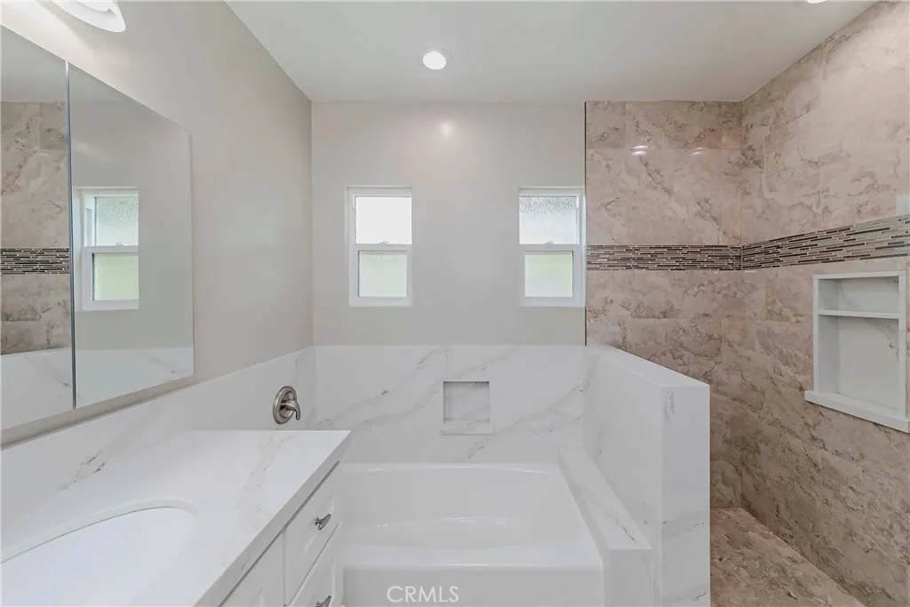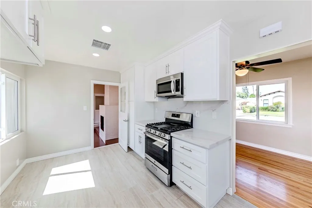 Remodeled, move-in ready single-family home in a desirable neighborhood. The living room features hardwood floors, a brick fireplace, and a ceiling fan. The modern kitchen includes porcelain tile flooring, white shaker cabinets, quartz countertops with full backsplash, stainless steel appliances, and a brand-new range oven. It opens to the dining area and connects to the family room. The upgraded bathroom offers newer cabinets, light fixtures, a bathtub, quartz countertop, and a separate shower with custom tile work. Bedrooms are well-sized, and the spacious family room can be used as a guest room, office, or entertainment space. Additional features include dual-pane windows, central HVAC, and laundry hookups in the garage. The property offers ample parking with a long driveway for multiple cars plus a one-car garage. Located on a quiet tree-lined cul-de-sac, it is close to Downtown Downey, schools, and restaurants, with convenient access to the 605, 105, and 5 freeways.