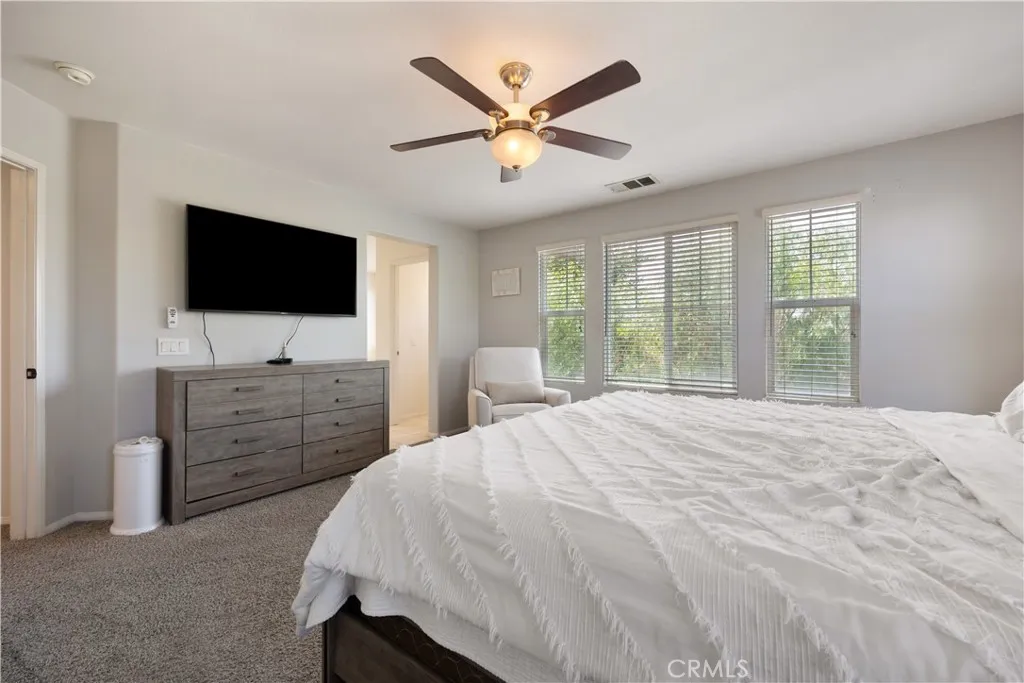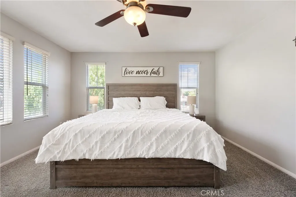 Wonderful 3 bedroom / 2.5 bathroom home in excellent Chino community. The home features newer interior paint, new paint on kitchen and bathroom cabinetry and newer carpeting throughout. The first floor features an entry, large family room with fire place, a downstairs half bathroom and a large kitchen with dining area. The kitchen feature Corian countertops, a stainless steel stove, dishwasher and microwave. There is also ample counter top space and storage. There is an attached two car garage with direct access into the home. The second floor features a large master suite with plenty of closet space. The master bathroom features a dual sink vanity, a separate shower and a separate soaking tub. Additionally, there is an upstairs laundry room. Blinds through out the home plus ample LED lighting. The perimeter features block walls and vinyl fencing. The home is in move in condition!