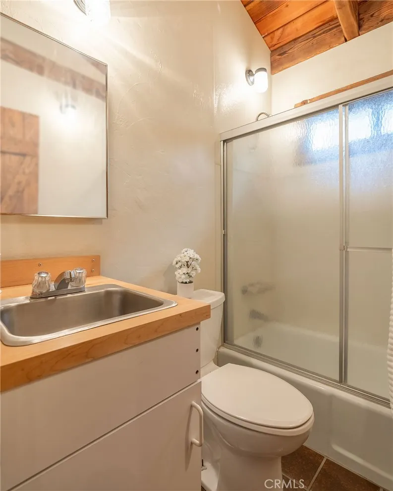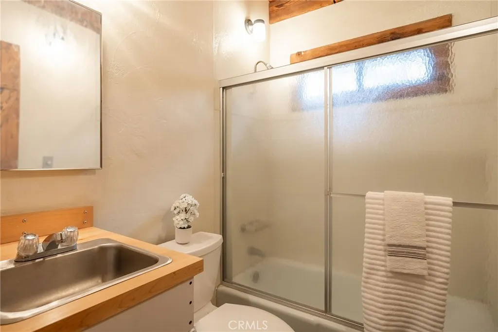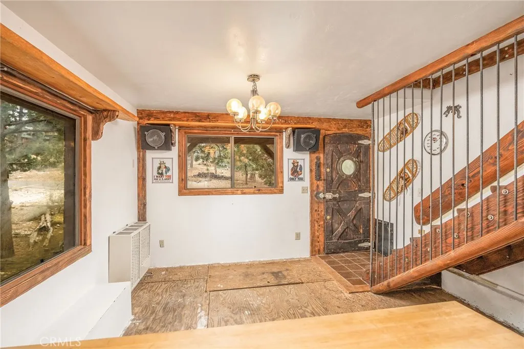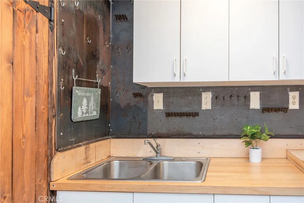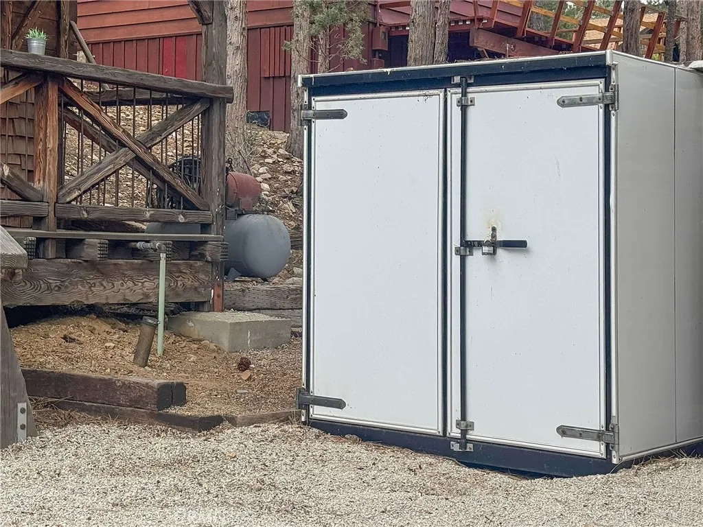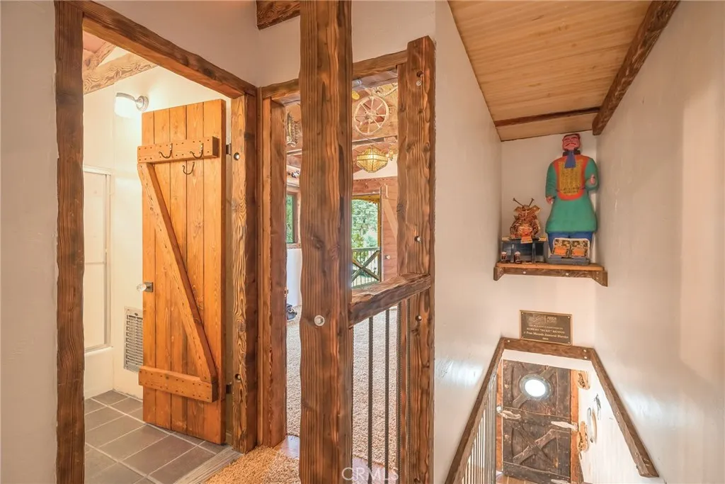 This 2-bedroom, 1-bath cabin on a 2,500 sq. ft. lot, nestled amid mountain beauty and mature trees, blends whimsical charm with enduring craftsmanshipoffering a wonderful opportunity for your next mountain retreat or investment. Built as the personal passion project of a contractor/carpenter known for the beauty of his spiral staircasesthis home showcases both craftsmanship and integrity. Amazingly thick wood doors pair with commercial-grade lock systems, industrial-style hardware, and a fire suppression system in the rear yard, underscoring a home built to last. Rustic wood and metal details highlight the cabins mountain character, with craftsmanship adding warmth and charm. Inside, each bedroom features open wood-beam ceilings, unique light fixtures, and well-sized closets, while the front bedroom opens to its own upper balcony overlooking the front yard. The 2nd bedrooms double doors provide access to the rear. This home is full of characterready and waiting for the next owners to add to its special nature with their own vision. A covered front porch frames the yard, and a free-standing locked storage unit offers space for tools, gear, and toys. Good, level parking adds convenience to mountain living, and the home itself is loaded with potential. Sugarloafs small-town charm is just minutes away with Kallans Bar & Grill, the local park, fire station, post office, and neighborhood market, while Big Bear Lake, ski resorts, and Big Bear's Village with its shops, restaurants, and year-round entertainment are just a short drive. A truly unique property ready for you to make it