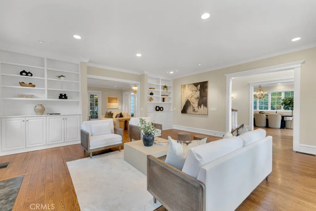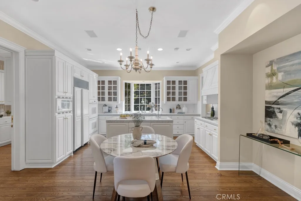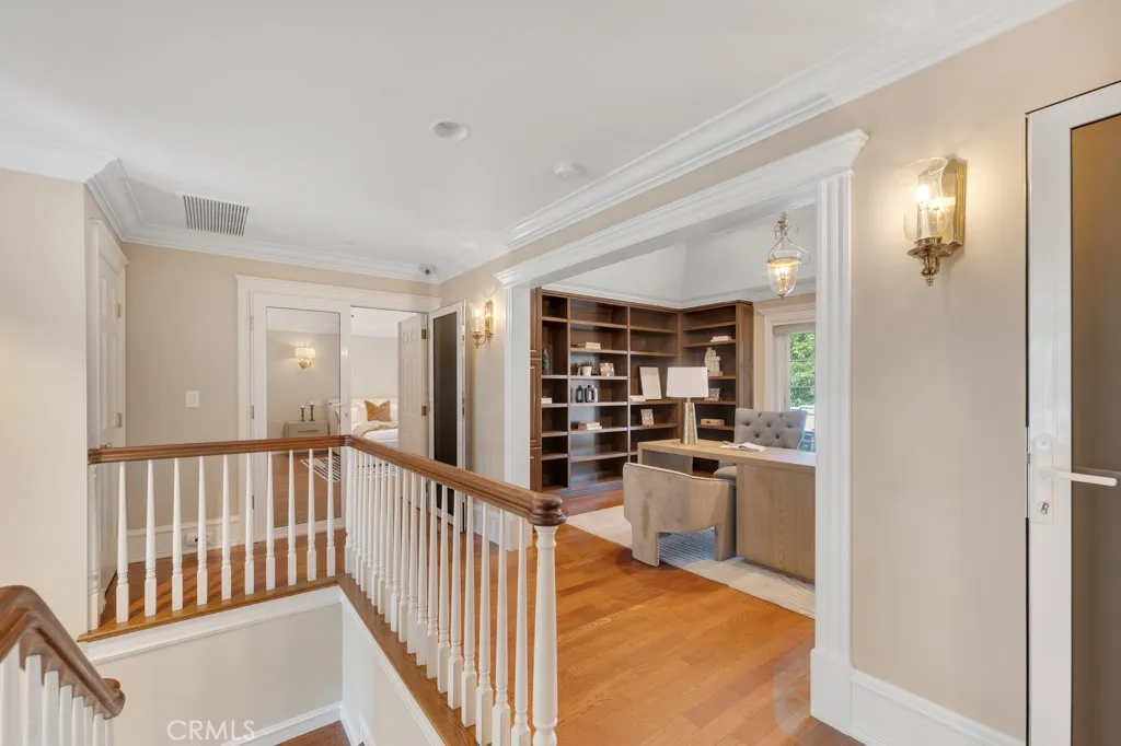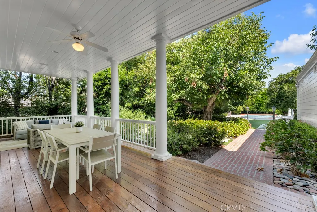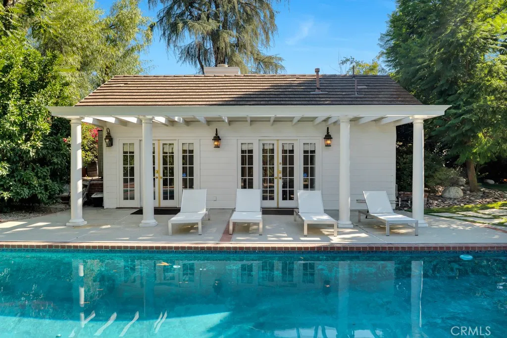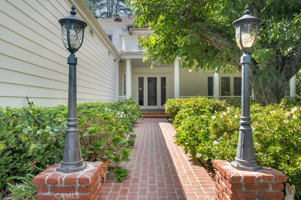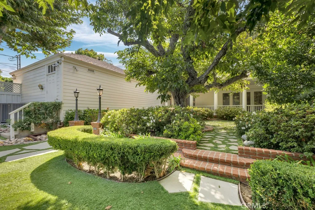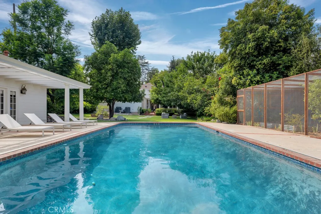 Tucked behind private gates in one of the most coveted South of the Boulevard neighborhoods, this stately Georgian estate sits on a rare, flat 18,546 sq. ft. lot surrounded by lush greenery and mature trees. Built in 1997 with timeless design and soaring 10-foot ceilings, this home offers both sophistication and warmth, blending classic elegance with everyday comfort. From the moment you enter the grand foyer, youre welcomed into a home designed for entertaining and gathering. The formal living and dining rooms set the stage for memorable celebrations, while the spacious family room with its French doors leading to the gorgeous covered patio invite more casual moments. Overlooking a blooming rose garden, the kitchen features a center island, walk-through butlers pantry, and abundant storagemaking it the heart of the home. Upstairs, the primary suite is a private retreat, complete with French doors that open to an expansive balcony with sweeping views of the lush grounds. The spa-like bathroom offers a soaking tub, dual vanities, and a separate shower, while double walk-in closets provide ample space. A handsome library with built-ins and balcony access creates the perfect escape, and two additional en-suite bedrooms ensure comfort for all. The outdoors feel like a private sanctuary. A sparkling pool with automatic cover is ideal for long summer days, while the expansive grounds include an enclosed vegetable garden with raised beds and an orchard of fruit treesapple, avocado, pomegranate, citrus, and walnut to name a fewbringing both beauty and bounty. A charming 400 sq. ft.