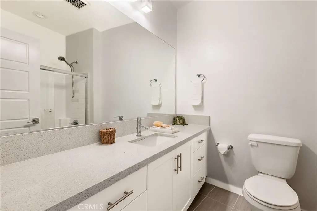 Welcome to The Element at Central Park Village, where style meets comfort in this beautifully upgraded 4-bedroom, 3.5-bathroom home. The flexible ground-level suite with a private bath is perfect for guests or a dedicated home office. The main living level features an open floor plan with soaring 10-foot ceilings, abundant natural light, and two balconies for indoor-outdoor living. The extra large chefs kitchen showcases sleek quartz countertops, a full backsplash, a generous island with seating, and a built-in refrigerator. A guest powder room completes this level. Retreat upstairs to the spacious primary suite with a walk-in closet, dual vanities, and a tiled walk-in shower. Two additional bedrooms, a full bathroom, and a laundry area with storage are also on this floor. Designer details include Italian porcelain tile, Newer vinyl flooring, and premium appliances such as a steam washer/dryer and tankless water heater. A side-by-side two-car garage with a Reverse Osmosis Water Filtration System and EV Car Outlet adds convenience. Enjoy an unbeatable location just minutes from Brea Mall, Downtown Brea, and Top Award Winning Brea schools, this home is also within walking distance to Tamarack Park and the Central Park with playgrounds, splash pad, and BBQ areas. A perfect blend of modern upgrades and community livingdont miss this rare opportunity!