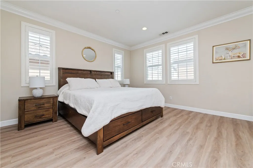 Turnkey home with SOLAR located in the heart of Eastvale offering 3,194 sq. ft. of living space with 5 bedrooms and 4.5 bathrooms including a convenient first-floor bedroom with full bath, ideal for guests or multi-generational living. The interior features beautiful tile flooring, crown molding, recessed lighting and surround sound, creating a bright and modern atmosphere. The open-concept kitchen flows seamlessly into the family room and highlights a large center island with bar seating, stainless steel appliances, walk-in pantry and abundant cabinet space. Upstairs includes a spacious loft, perfect for a media room, office or play area, while the primary suite offers dual vanities, soaking tub, walk-in shower and a customized walk-in closet. Shutters are installed throughout the second floor for added elegance. HOA amenities include swimming pool, spa, fitness center and more. Ideally located near award-winning schools, parks, and the newest shopping destinations including Costco, 99 Ranch Market, Walmart and the upcoming Whole Foods. Easy access to the 15, 60 and 71 freeways makes this home a commuters dream. Estimated tax rate is only 1.3%. Dont miss this opportunity to own a stunning Eastvale property!