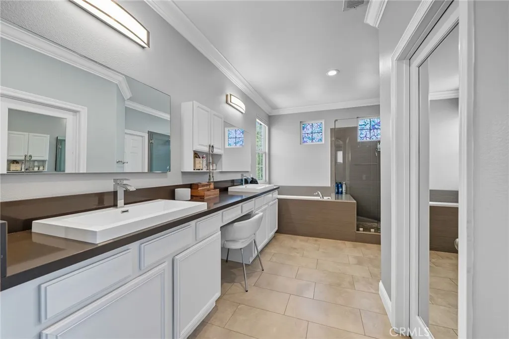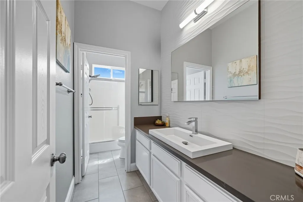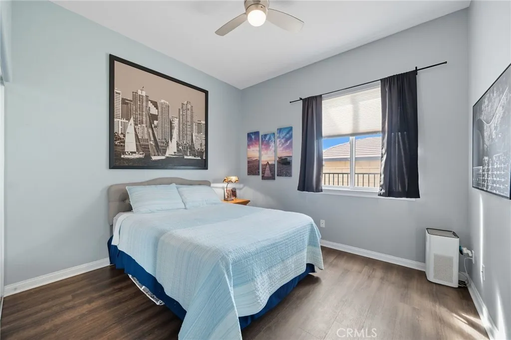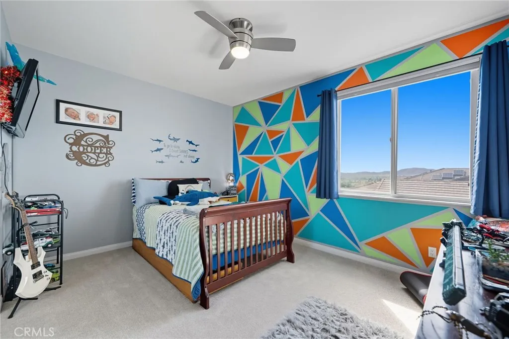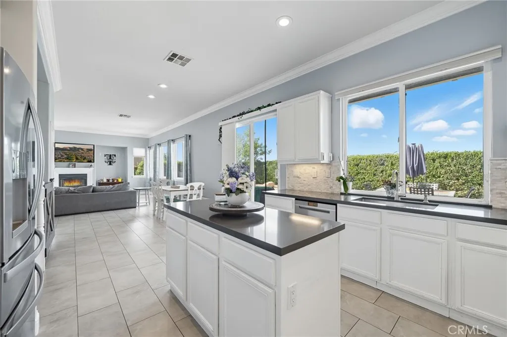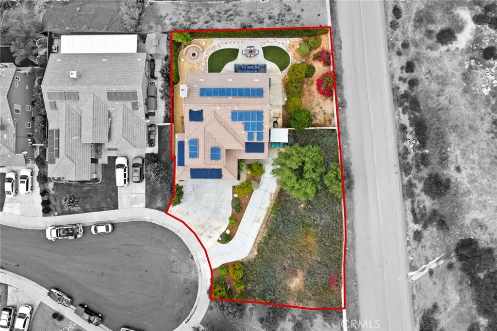 HIGHLY UPGRADED 5 BEDROOM 3 BATH HOME ON AN OVERSIZED LOT WITH BONUS ROOM, SOLAR & NO HOA. Welcome to 27986 Merbie Circle, a beautifully upgraded 5 bedroom, 3 full bathroom, 3,031 sq ft home with a loft upstairs PLUS a large bonus room, ideally located on a quiet cul-de-sac in Menifee. From the moment you enter through the formal living room, youll notice the attention to detail with elegant tile flooring, oversized baseboards, and crown molding throughout the main level. The modern kitchen is a chefs dream, showcasing quartz countertops, a striking stone backsplash, upgraded stainless steel appliances, and an open layout that flows seamlessly to the dining area and family room. Cozy up by the fireplace on cool evenings, or step through the sliding glass doors to your private, drought-tolerant backyardprofessionally landscaped and featuring a built-in gas firepit, perfect for entertaining. The large backyard has space to accommodate a pool, with designs already in place. Downstairs, youll find a full bedroom and upgraded bathroom as well as a laundry room equipped with storage. Upstairs boasts a versatile loft/gaming area AND bonus room. The primary bedroom and retreat offers laminate wood flooring, crown molding, and French doors leading to a private balcony with breathtaking views of the hills, mountains, valley, and twinkling city lights. The spa-like upgraded bathroom includes dual sinks, a sunken tub, a separate shower, and a huge walk-in closet. Three additional spacious bedrooms with mirrored closets and ceiling fans, plus a beautifully upgraded dual-sink bathroom, c