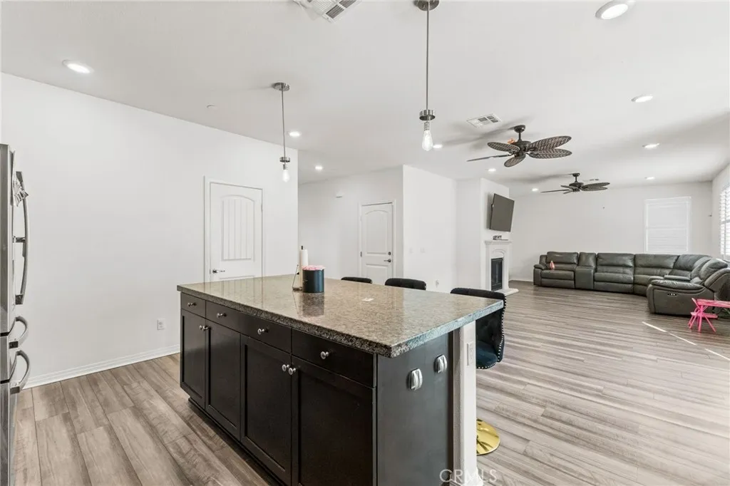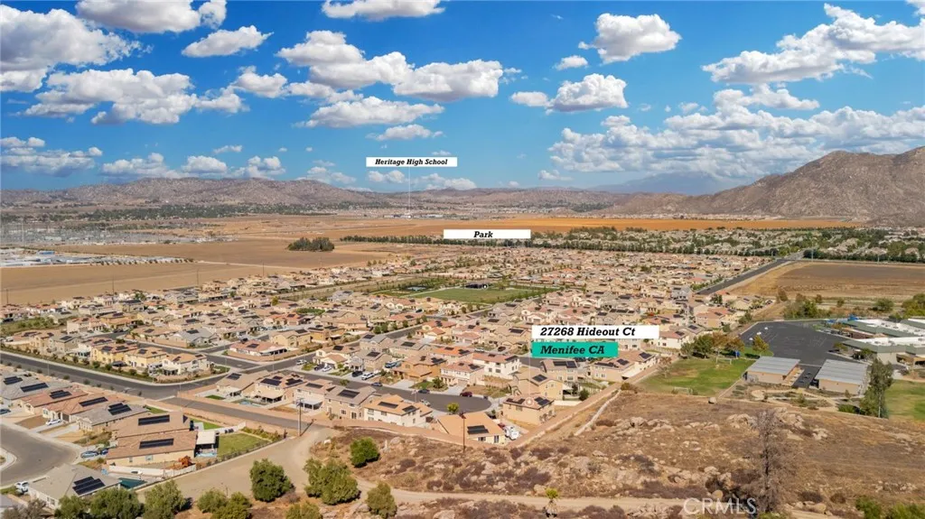 RV Parking & No HOA! Welcome to this beautiful home in Menifee, offering the perfect blend of style, space, and convenience. The first thing youll notice is the stunning curb appeal and inviting front courtyard, perfect for relaxing evenings outdoors. Inside, youll love the open floor plan with luxury vinyl flooring, a spacious great room with a cozy gas fireplace, and a chefs kitchen featuring granite counters, stainless steel appliances, double ovens, rich cabinetry, and a huge breakfast bar for family and friends to gather around. The main floor includes a private guest suite, while upstairs youll find the luxurious owners suite with dual sinks, oversized shower, and views of the hills. Secondary bedrooms are generous in size and connect to a versatile loft ideal for a home office, gym, or media room. Step outside to a large, covered patio overlooking the low-maintenance backyard with raised brick planters. And heres the best part: this home comes with gated RV access and NO HOA giving you the freedom to truly enjoy your property. Additional features include upgraded window coverings, indoor laundry with storage, and block wall + vinyl fencing for extra privacy. Conveniently located near shopping, dining, and freeway access, this home checks every box!