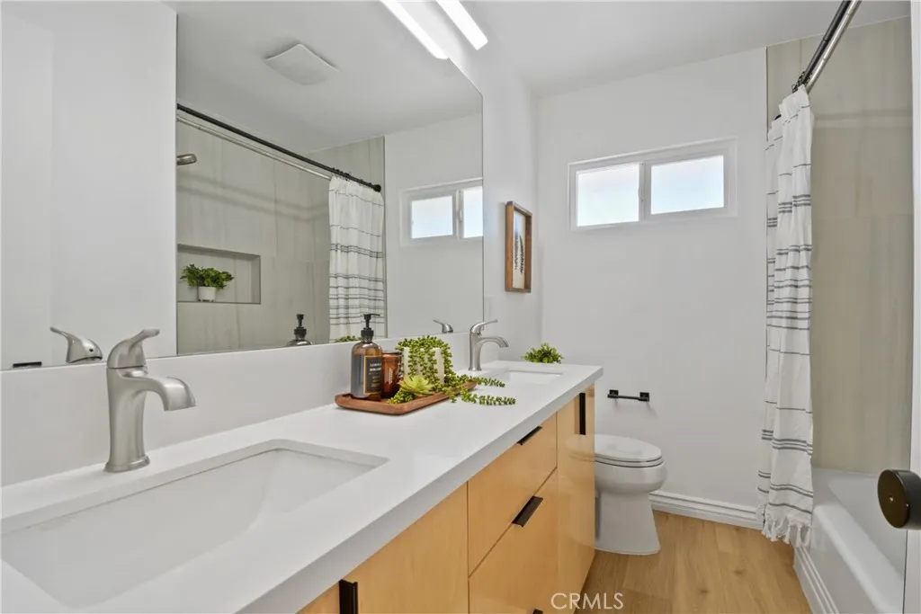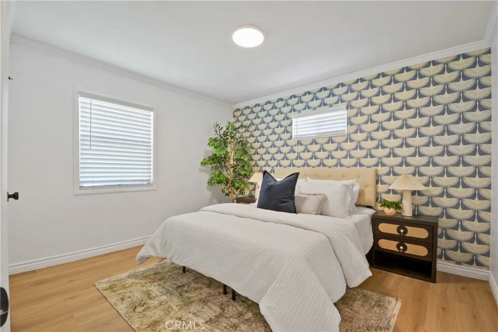 Welcome to 2463 Valhalla Street, a fully renovated 3-bedroom, 1-bath home offering 1,028 sq. ft. of stylish living space on a spacious lot. The open-concept layout is filled with natural light and features waterproof vinyl flooring, recessed lighting, and a seamless flow between the living room, dining area, and kitchen. The modern kitchen boasts quartz countertops, a waterfall island with ample space for seating and casual dining, sleek cabinetry including deep pots-and-pans drawers, and stainless steel appliances. The sliding doors open to a private backyard oasis with a patio, mature trees, and plenty of room to entertain or even add a pool. Each bedroom is uniquely designed with statement wallpaper and abundant light, complemented by a bathroom with a double vanity and clean modern finishes. Additional highlights include a two-car garage, driveway parking, a dedicated indoor closet with stacked washer/dryer, and a versatile bonus room- perfect as a home office or home gym. Conveniently located near Claremont Village, the Claremont Colleges, Montclair Plaza, and Bonelli Park with quick access to the 10, 71, and 60 freeways, this turnkey property blends modern design, comfort, and an unbeatable location.