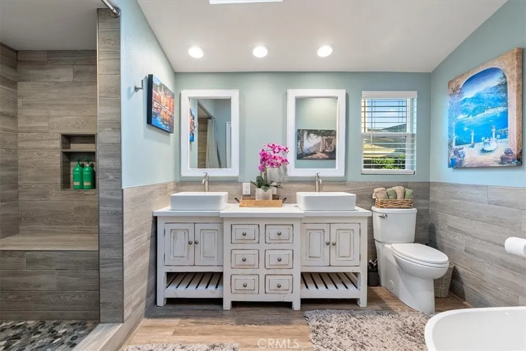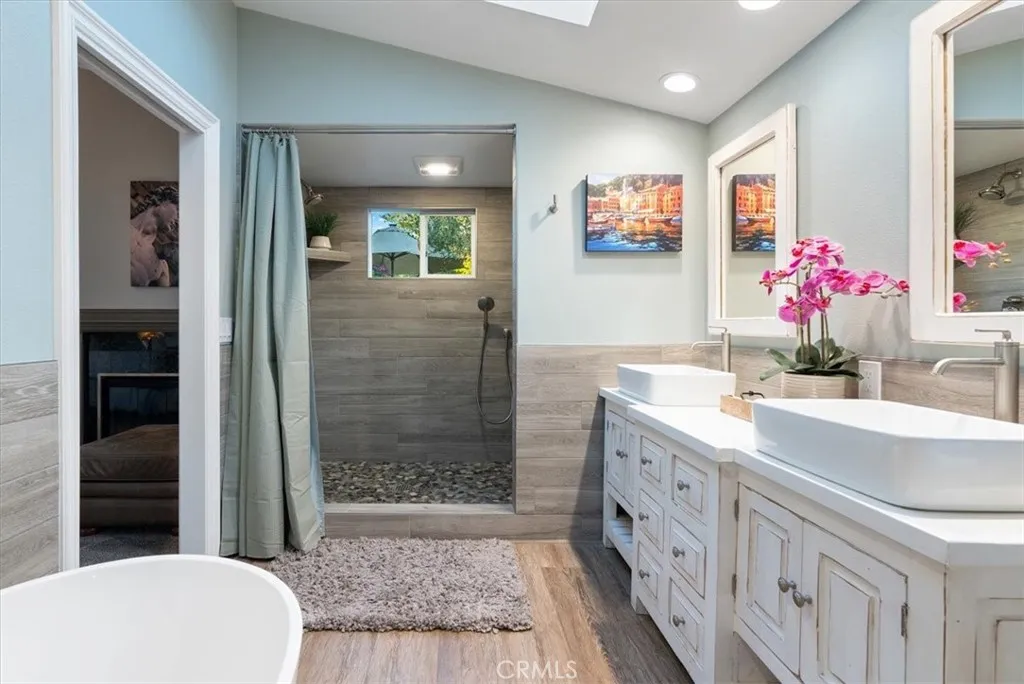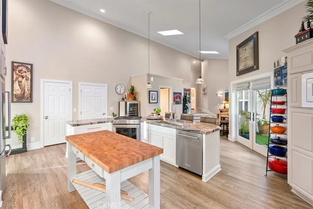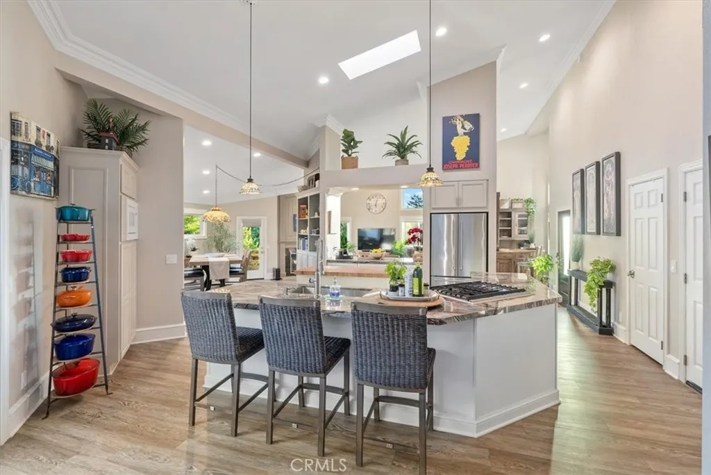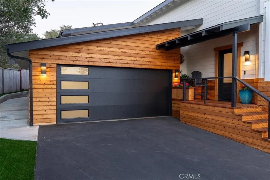 Discover this beautifully renovated 2,389 sq. ft. home in the highly sought-after Pine Knolls Estates neighborhood of Cambria, offering 3 bedrooms, 2.5 bathrooms, a bonus room, and an attached oversized 2-car garage. Fresh cedar siding pairs with modern interior finishes to create a one-of-a-kind residence designed for seamless indoor-outdoor living. The great room welcomes you with soaring ceilings and panoramic glass rising nearly 12 feet, framing wooded coastal views and filling the space with natural light. A cozy fireplace sets the tone for gatherings, while crown molding adds refinement throughout. At the heart of the home is an expansive open-concept working kitchen, newly equipped with custom cabinetry, dual fuel range, and appliances selected for the owner, a classically trained chef. Skylights illuminate hand-selected Blue Tempest quartzite counters, generous prep areas, and custom Boos Block workstations. A front-row seating bar invites friends and family to gather while meals are prepared, and French doors extend to the courtyard loungeperfect for entertaining and outdoor cooking. The primary suite offers elevated ceilings, its own fireplace, and serene wooded views. The spa-inspired bath includes a custom shower with multiple Hansgrohe showerheads, a soaking tub, and a dual sink vanity handcrafted from reclaimed wood. French doors open to the private courtyard deck, where a swim spa provides the ultimate space to relax. Two additional bedrooms and a bonus room/office add flexibility for family, guests, or work needs. Outdoor living has been elevated with four c
