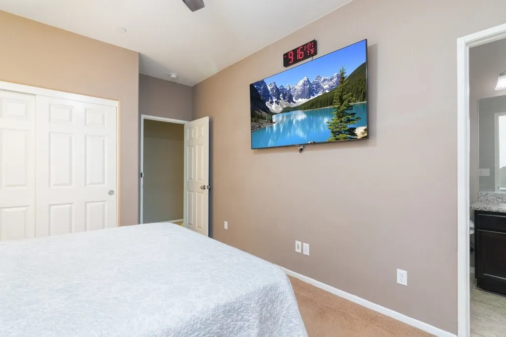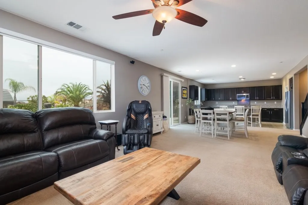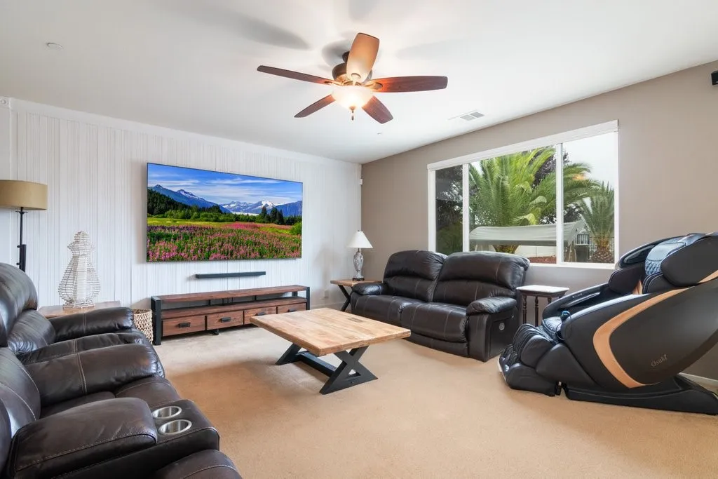 ***OPPORTUNITY TO ASSUME OWNER'S CURRENT VA LOAN AT 2.99% FIXED INTEREST RATE, EVEN IF YOU'RE NOT IN THE MILITARY*** This EXCEPTIONAL HOME boasts a SWEEPING PANORAMIC VIEW, PAID-OFF SOLAR, 5 BEDROOMS with 3 WALK-IN CLOSETS, 3-1/2 BATHS, 3-CAR GARAGE, and an IMMENSE LOT in the much sought-after AUDIE MURPHY RANCH COMMUNITY! Spanning over 3,400 sq. ft of living space on over 9,500 sq. ft lot, every inch of this property is the epitome of attention to detail and master of craftsmanship. Step inside where you are greeted by an open floor plan and soaring ceilings with lots of natural light let in. The inviting and spacious main family room flaunts an open-concept that connects to the kitchen, and the kitchen itself is a chef's delight featuring granite countertops, stainless steel appliances, reverse-osmosis water filtration, a sizable walk-in pantry, and a large granite island positioned to take in the stunning views of the city and mountains, making everyday living and entertaining a joy. And for added convenience, all main floor window blinds are motorized with a remote control, so opening your blinds to enjoy the city and mountain scenes has never been easier. Also on the main floor, youll find a private bedroom with its own full bathroom, excellent for guests or multi-generational living. Upstairs, you'll be greeted with a very generous loft, perfect for entertaining your friends and family with your pool table or your very own home theater. You'll also appreciate that two of the bedrooms upstairs contain their own large walk-in closets, ideally suited for that growing fam
