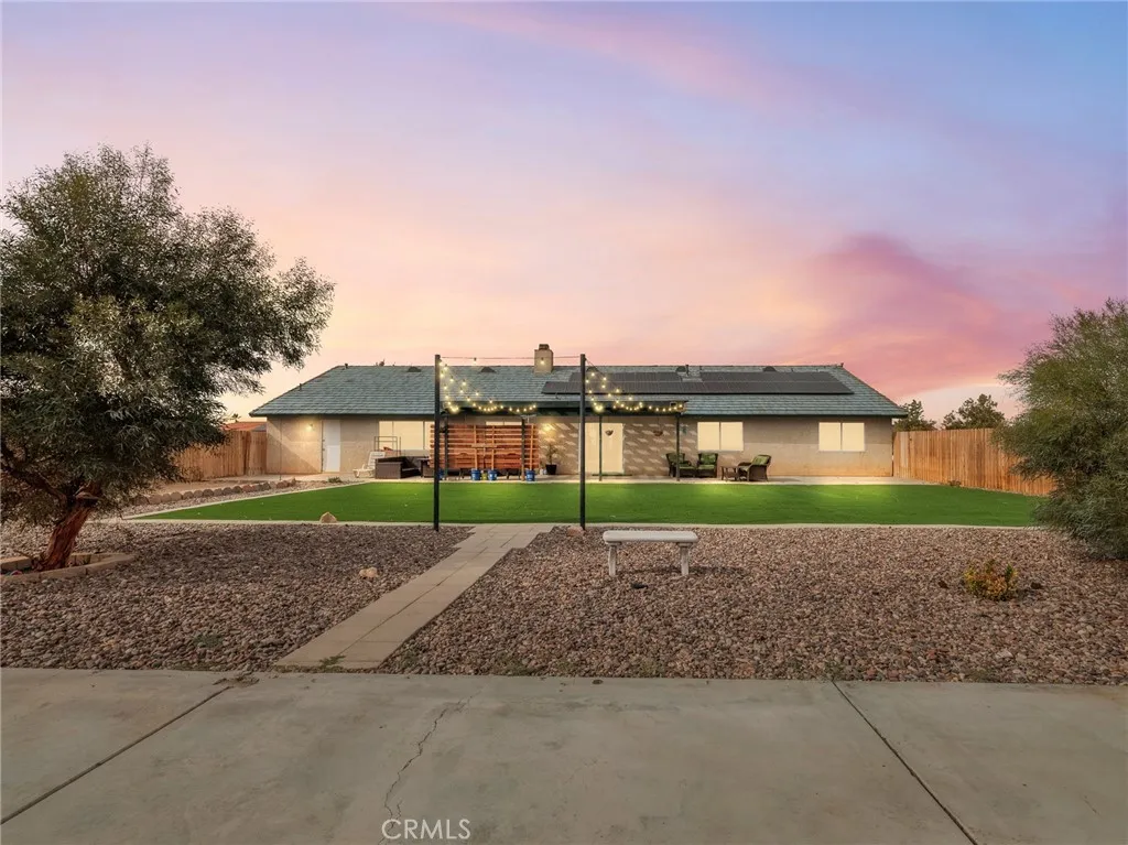 This beautiful 3-bedroom, 3-bathroom home offers the perfect blend of modern updates, energy efficiency, and versatile living space on a nearly one-acre lot, creating an ideal setting for both everyday living and future possibilities. Recent upgrades provide peace of mind, including roof repairs, a 26-panel solar system with remarkably low monthly costs, and new flooring throughout the kitchen, bathrooms, hallways, and laundry room, along with a new dishwasher for convenience. Inside, youll find spacious living areas and large bedrooms, complemented by a generous bonus room that can easily serve as a fourth bedroom, office, gym, or theater. An additional versatile room adds even more options for a guest space, private office, or hobby room. Outdoors, the property has been designed for relaxation and efficiency, featuring artificial grass, rock landscaping, a soothing spa, and a shaded gazebo that makes entertaining easy. With multiple driveways, large concrete areas, and room for livestock, RV parking, or even a future ADU, the lot is as practical as it is inviting. Located on a paved road with natural gas and within the Snowline School District, the home provides comfort, convenience, and long-term potential in a desirable setting. Move-in ready and filled with thoughtful improvements, this property offers the rare opportunity to enjoy country-style living with modern amenities already in place. Schedule your private showing today and discover all that this unique home has to offer.