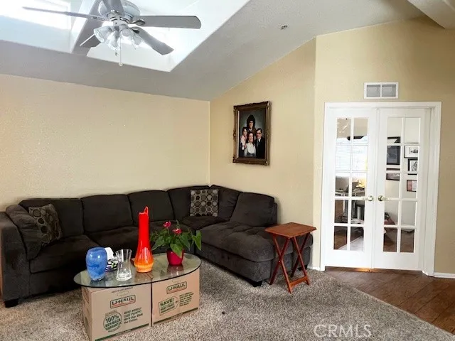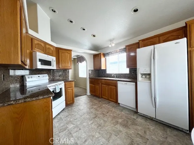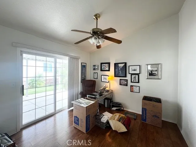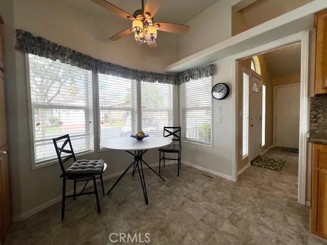 Great location!!! Welcome to Valencia Lea, Highland's premier 55+ senior community. This 2005 Hallmark Winchester IV home, with approx. 1392 SF, 2 bedrooms w/ bonus room, 2 bath, and attached 2 car garage. The exterior features a stamped concrete drive with brick steps up to a covered porch. The extra-large back yard looks out to a park maintained nature trail and pond, with a private patio and separate concrete pad perfect for outdoor living. Features include dual pane windows, ceiling fans and vaulted ceilings throughout. The kitchen has solid wood cabinets, ample storage and breakfast nook with plenty of light and includes all appliances. Living and dining rooms open to each other in an open floor plan perfect for entertaining. The bonus room/office has a large slider leading to the patio. The spacious primary bedroom has a walk-in closet and a generously sized ensuite bath with accessibility shower and tons of storage. The guest room, bath and dedicated laundry room with included washer and dryer, round out this lovely home. Call or come in to schedule a showing, this house ready for you to call it home!