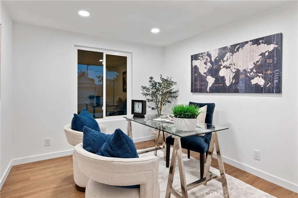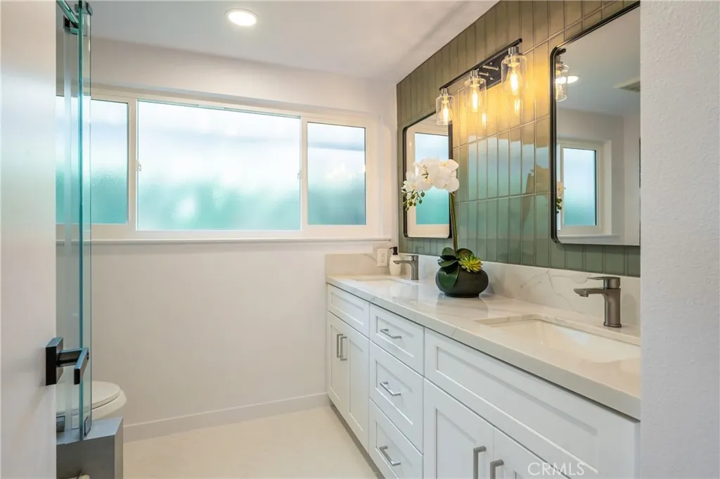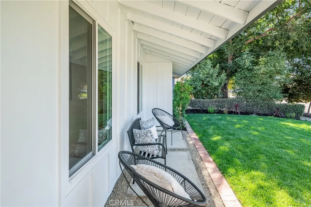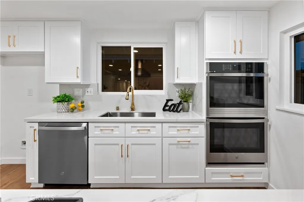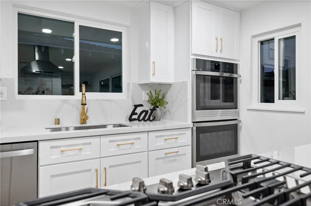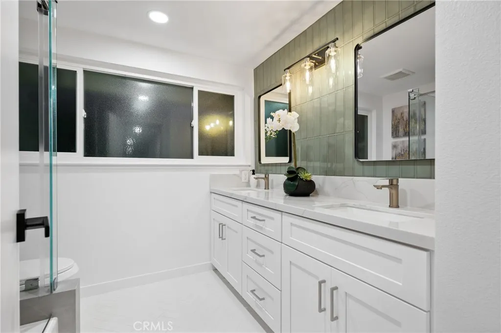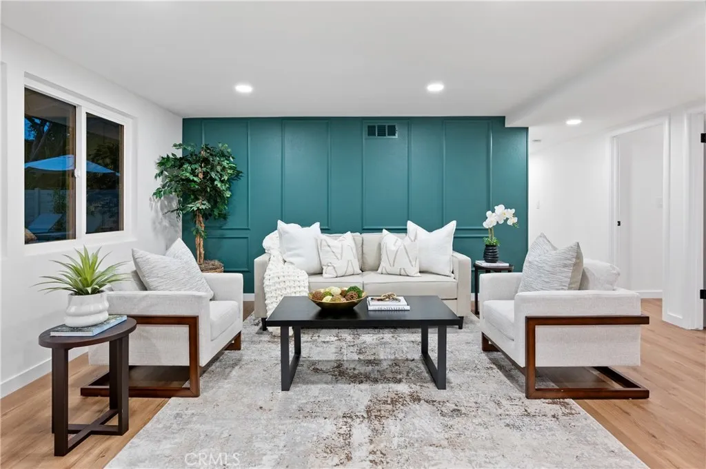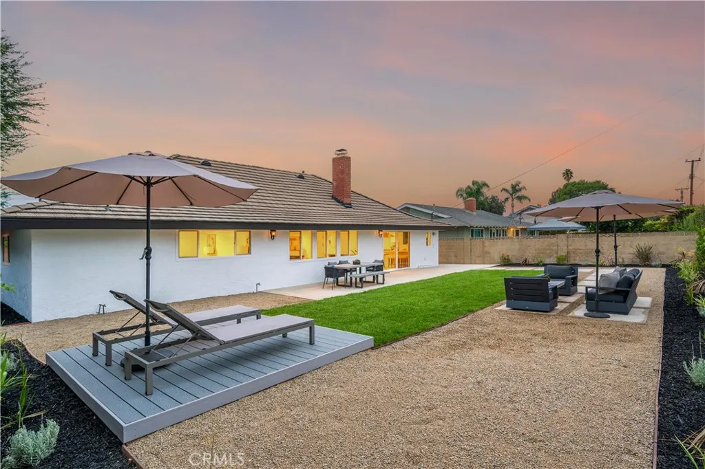 Experience modern elegance and timeless style in this exquisitely remodeled single-story home, offering a turnkey lifestyle in one of the areas most desirable neighborhoods with award-winning schools. Step inside to premium features that elevate everyday living, beginning with a beautiful entryway that flows into the living room, where a cozy chic fireplace and large windows create a bright and cheerful ambiance. This home boasts four bedrooms and two tastefully renovated bathrooms with modern touches. The primary suite is a true retreat, complete with a new vanity and a walk-in shower featuring a frameless glass door. The guest bathroom offers a custom double vanity, soaking tub, and shower. At the heart of the home, the chef-inspired kitchen shines with elegant Carrara quartz countertops, a tile backsplash, all-new stainless-steel appliances, shaker-style slow-close cabinetry, and a custom peninsulaperfect for cooking and entertaining. Step outside through the new double-paned slider to your resort-style backyard oasis, featuring new landscaping, hardscape, and a spacious deck. Whether for sunny afternoons or starry-night gatherings, this backyard delivers the perfect escape. Additional highlights include a finished two-car garage with new epoxy flooring, new garage motor, new garage door, new HVAC system, permitted windows and sliding door, new PEX plumbing, recessed LED lighting, and GFCIs throughout. Fresh paint, stucco, luxury vinyl plank flooring, and updated bathroom tile add to the move-in-ready appeal. The mainline plumbing has been replaced and includes two clean