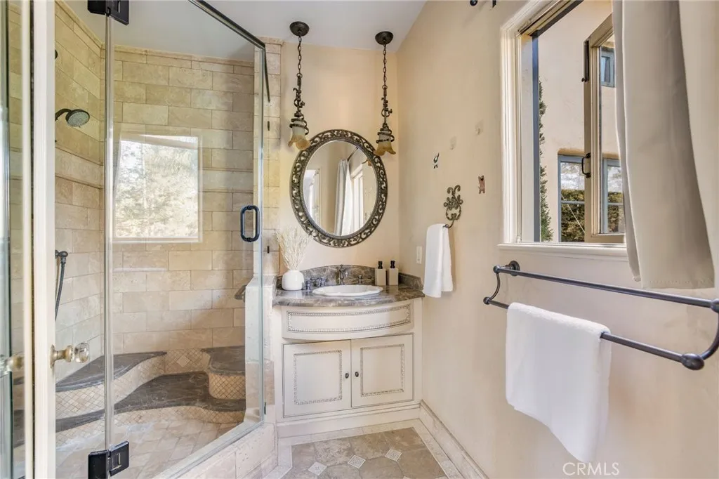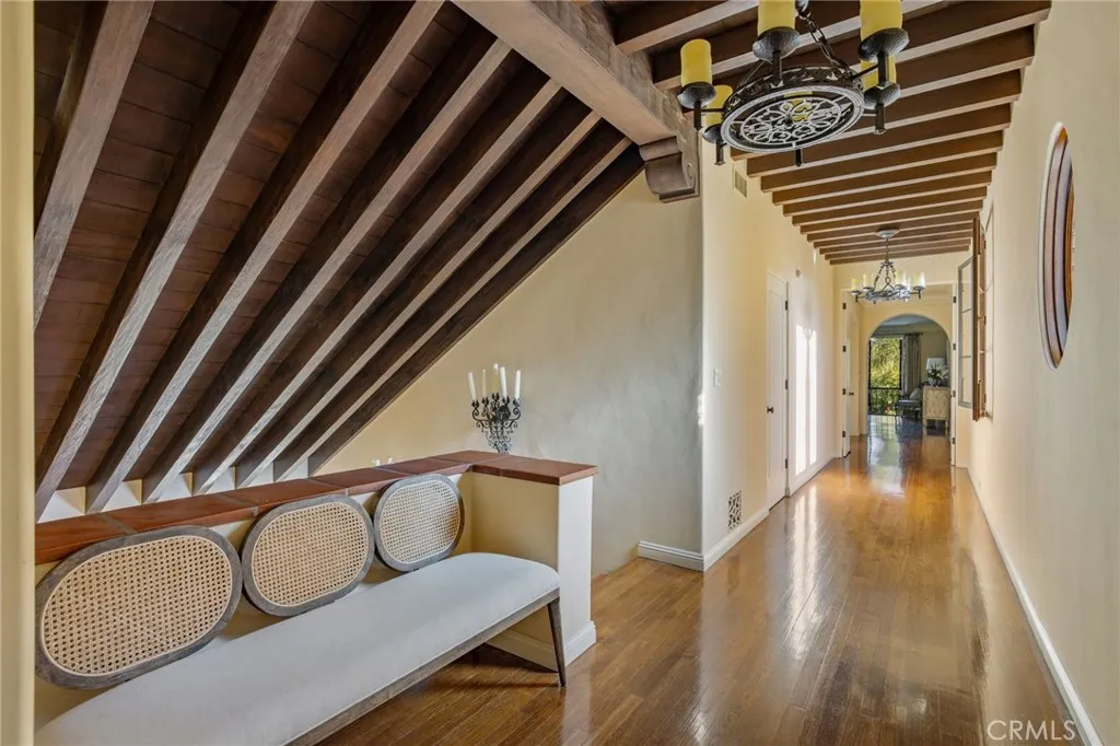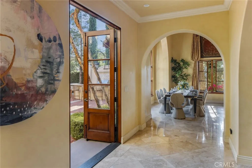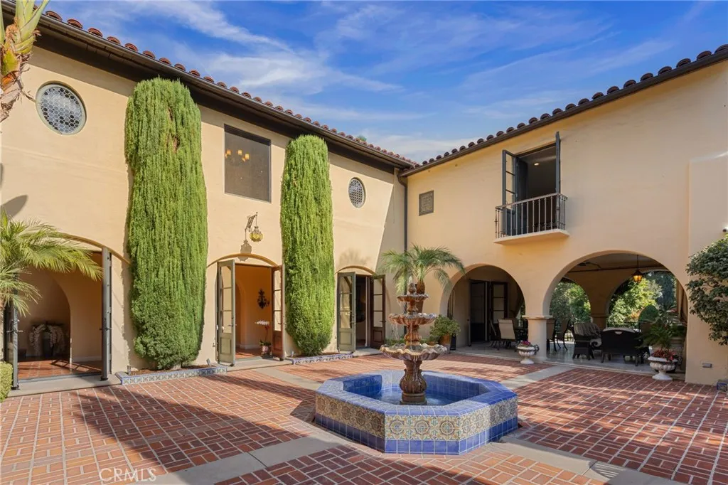 A rare courtyard estate in Pasadenas prestigious Lombardy Road enclave, this 1931 Wallace Neff Mediterranean masterpiece blends timeless design with modern luxury across gated resort-style grounds. A sweeping tree-lined drive leads to a manicured faade framed by gardens and mature landscaping. Enter through the arched stone portico and wrought-iron front door into a grand foyer with century-old terracotta original Spanish tile flooring. The formal living room showcases a signature Neff fireplace, vaulted beamed ceilings, and arched windows and French doors overlooking the pool, gardens, and an outdoor living room embraced by vibrant bougainvilleas. The formal dining room opens to a terrace with mountain views and flows seamlessly into the entertainers kitchen. The chefs kitchen features an oversized island, professional-grade appliances, and a separate wok kitchendesigned for everything from casual meals to grand-scale entertaining. Upstairs, the grand primary suite, which offers balconies with mountain and garden views, a fireplace, dual walk-in closets, and a spa-style bath with soaking tub and rainfall shower. An adjoining retreat functions as a gym, office, or bedroom. Three additional ensuite bedrooms complete the upper level, with a main-level ensuite for guests. The exquisitely crafted lower level is dedicated to leisure, offering a private theater, game room, billiards lounge, and a climate-controlled wine cellar. Outdoor living is unrivaled, with a full kitchen and bar pavilion connecting to the pool, spa, firepit lounge, and expansive lawn. Terraces, balconies, fl