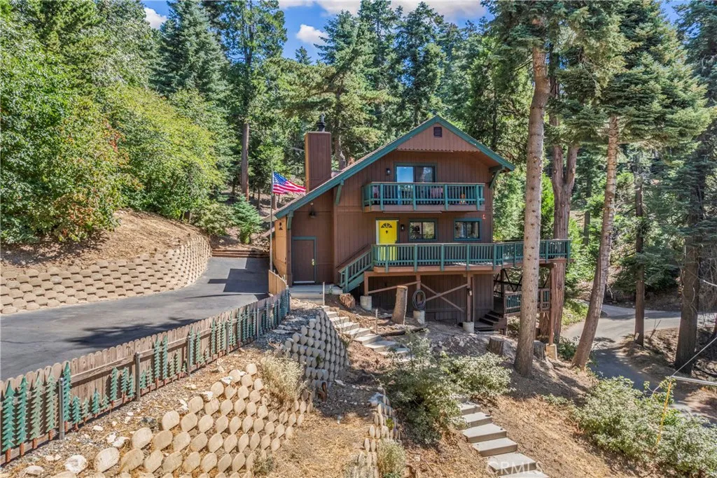 Welcome to one of the most coveted locations in Skyforest - "The Loop." Motivated Sellers moving out of state. This Fully remodeled 3-bed, 2-bath home offers 1,524 sq. ft. of modern living space across two levels, plus a 340 sq. ft. finished build-up on lower level. Situated on an expansive 1.19 -acre, street-to-street lot- this property gives you the feeling of owning your own private forest. Every window frames a beautiful view of towering trees, with brilliant seasonal color changes and California Mountain dogwood trees scattered throughout the property. Imagine sitting at your deck with the canopy overhead while enjoying the privacy barbequing your hamburgers looking out at the beautiful Forest views. FEATURES & UPGRADES Newly remodeled inside and out Three oversized bedrooms | 2 bathrooms | 1,524 sq. ft. + 340 sq. ft. finished build-up Two-story floor plan with spacious, open-concept living Wrap-around main deck plus two additional decks perfect for entertaining or enjoying tree-top views Massive walk-in closets in upstairs bedrooms with brand-new cabinetry and custom clothing storage systems Extremely rare 3-step entry easy, convenient access that few mountain homes can match Expansive paved private parking with space for 10+ vehicles ideal for boats, smaller RVs, and hosting many guests with ease Only 2 minutes from Highway 18 for quick, convenient access on or off the mountain via Hwy 18 or 330 Street-to-street lot offering privacy and unique property layout All major appliances new within the last 3-4 years refrigerator, chest freezers, water heater, central h