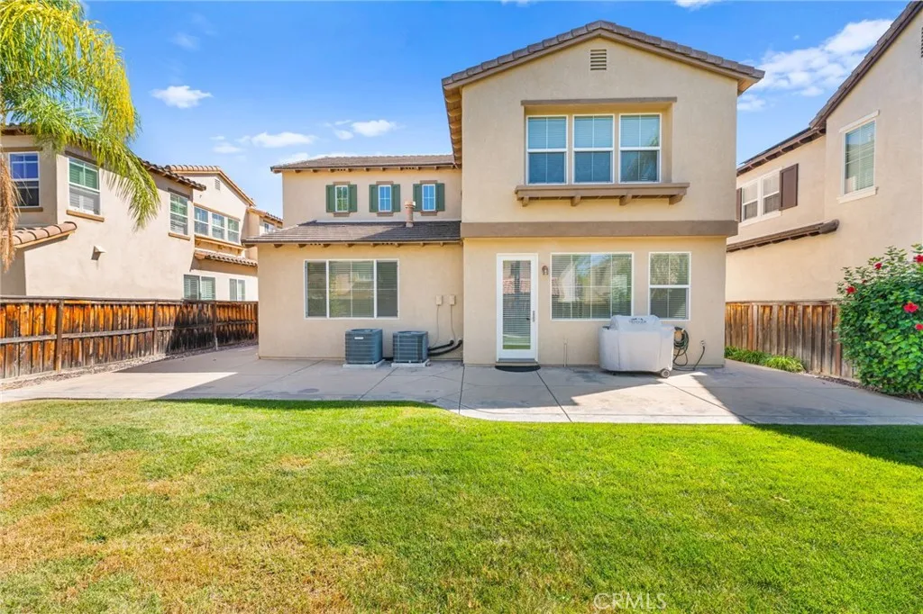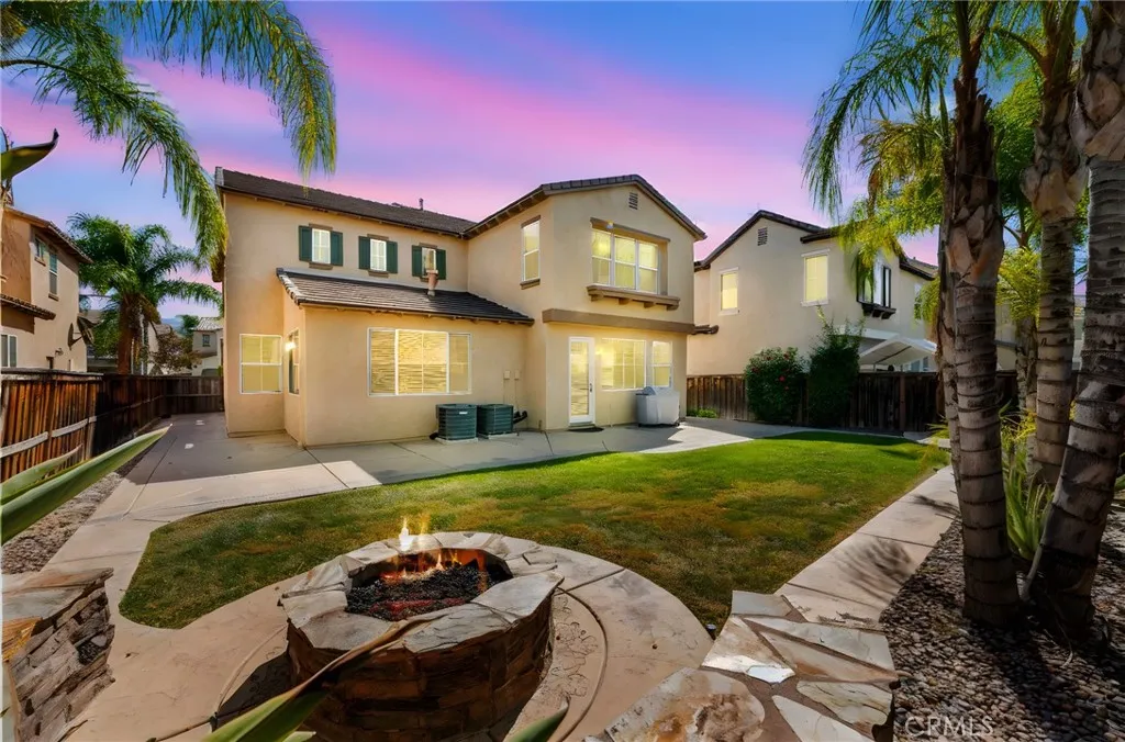 This beautiful South Temecula Wolf Creek home offers 4 spacious bedrooms, 4 bathrooms, and 2,632 sq. ft. of living space. Greet guests in the formal living room with soaring ceilings, then flow into the separate formal dining room for special gatherings. A convenient downstairs bedroom with a full bath is ideal for guests or multigenerational living. The kitchen features ample cabinetry and a double ovenperfect for hosting your next dinner party while the adjoining family room boasts a cozy fireplace and plenty of space to relax. Additional highlights include an owned solar system, a 2-car garage with built-in storage shelves and an upstairs laundry room with cabinets and countertops. The spacious master suite offers abundant natural light, a walk-in closet, dual vanities, a soaking tub, and a separate shower. Both secondary upstairs bedrooms have their own bathrooms, with one featuring a walk-in closet, plus a private balcony with views. Step outside to a stunning backyard retreat with color-stamped concrete, a custom-built gas fire pit with flagstone seating, and sparkling fire glass. The landscaping is enhanced with roses, palm trees, and plants. Located in the highly desirable Wolf Creek community, residents enjoy access to a 44-acre sports park and top-ranking schools. Dont miss your chance to own this exceptional homeschedule your private showing today!